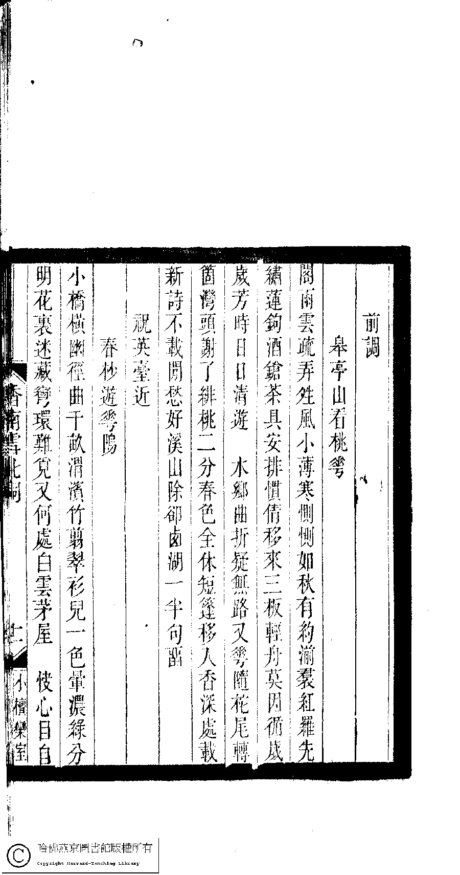 | Appears in: Xiao tan luan shi hui ke gui xiu ci: 10 ji 100 zhong 100 juan (edited by Xu Naichang, Qing dynasty): Xiang nan xue bei ci: 1 juan |