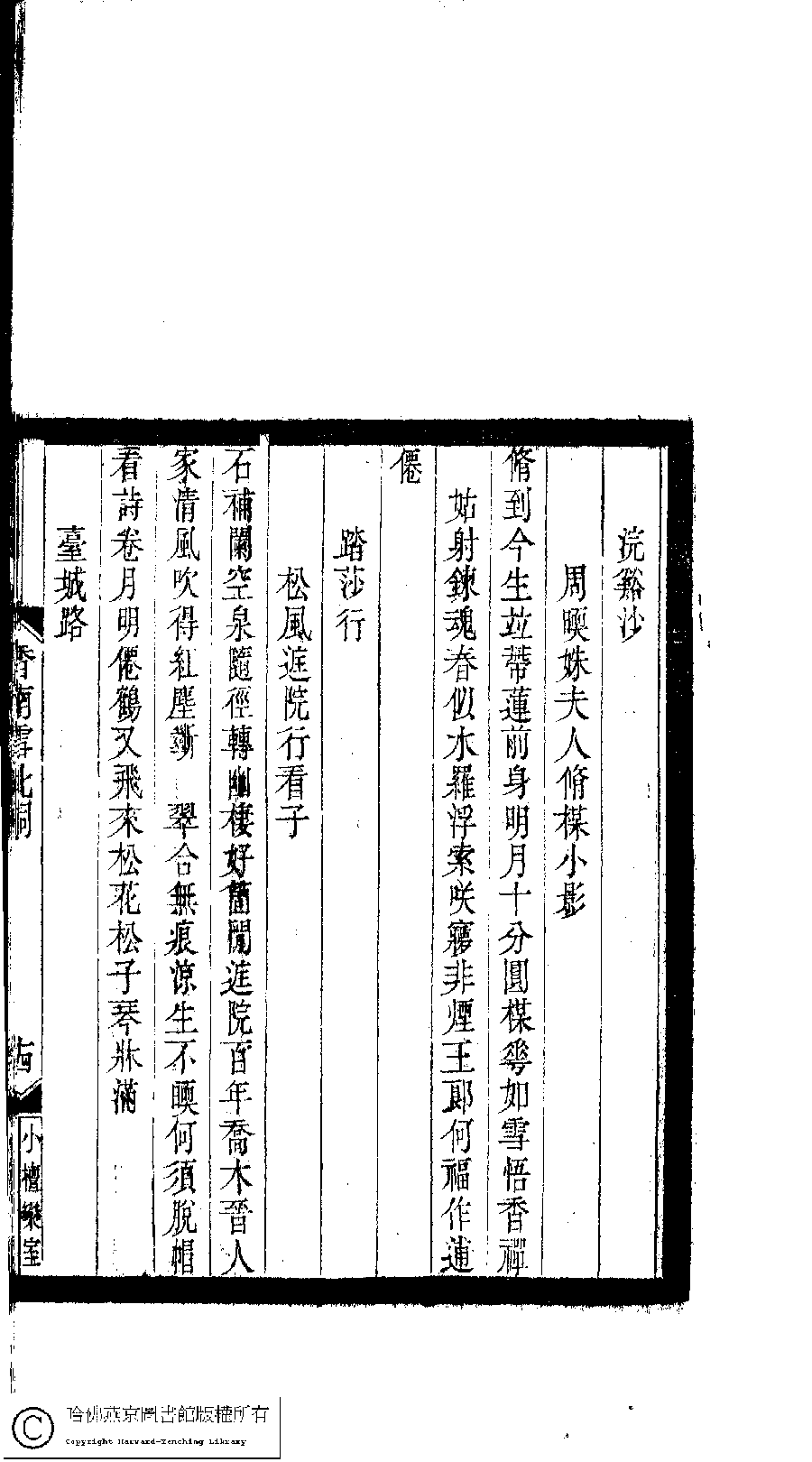 | Appears in: Xiao tan luan shi hui ke gui xiu ci: 10 ji 100 zhong 100 juan (edited by Xu Naichang, Qing dynasty): Xiang nan xue bei ci: 1 juan |