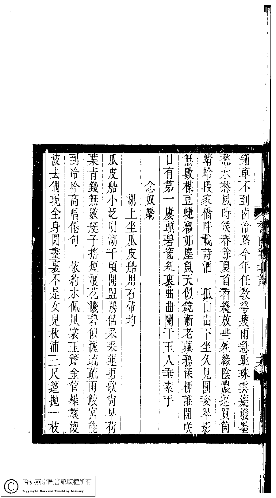Poem [Nian nu jiao : Hu shang zuo gua pi chuan yong Shizhou yun]