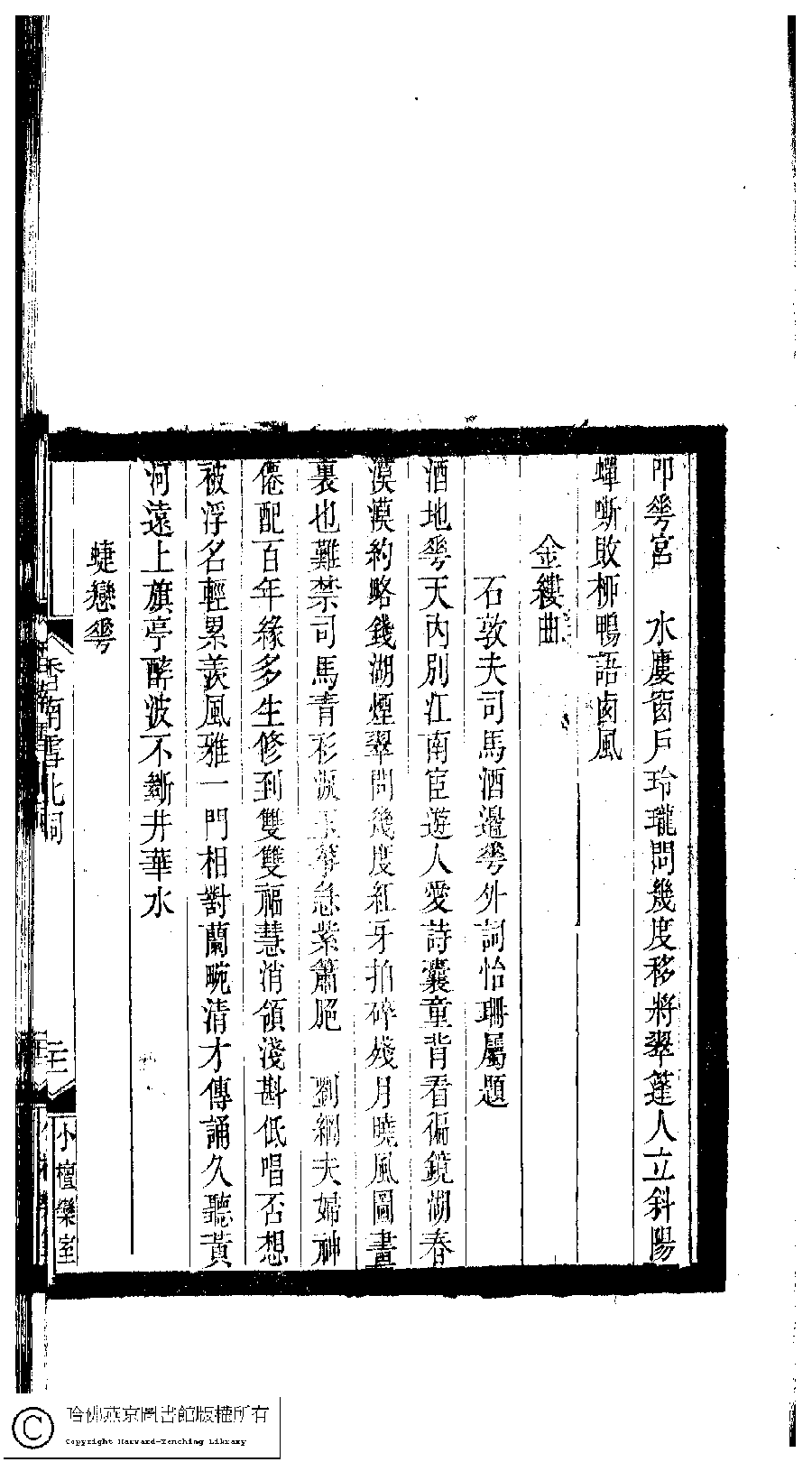 | Appears in: Xiao tan luan shi hui ke gui xiu ci: 10 ji 100 zhong 100 juan (edited by Xu Naichang, Qing dynasty): Xiang nan xue bei ci: 1 juan |