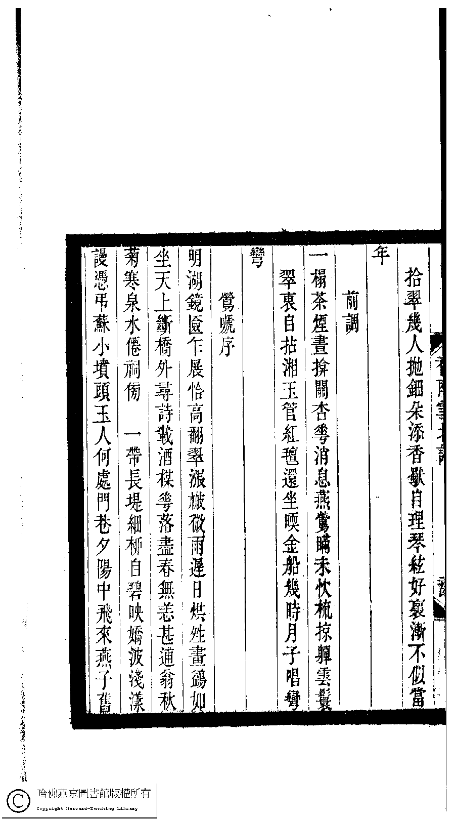 | Appears in: Xiao tan luan shi hui ke gui xiu ci: 10 ji 100 zhong 100 juan (edited by Xu Naichang, Qing dynasty): Xiang nan xue bei ci: 1 juan |