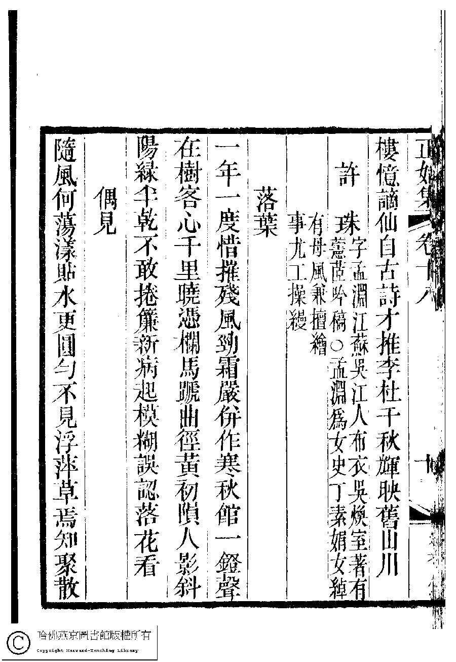 | (PRINT FRIENDLY VERSION) 國朝閨秀正始集﹕二十卷﹐附錄﹕一卷﹐補遺﹕一卷﹐又附題詞﹕一卷(清惲珠輯)。清道光十一年(1831)紅香館刻本。 ![]() Page : 18.10b | click for larger image | 國朝閨秀正始集﹕二十卷﹐附錄﹕一卷﹐補遺﹕一卷﹐又附題詞﹕一卷(清惲珠輯)。清道光十一年(1831)紅香館刻本。![]() Page : 18.10a | click for larger image | Back |