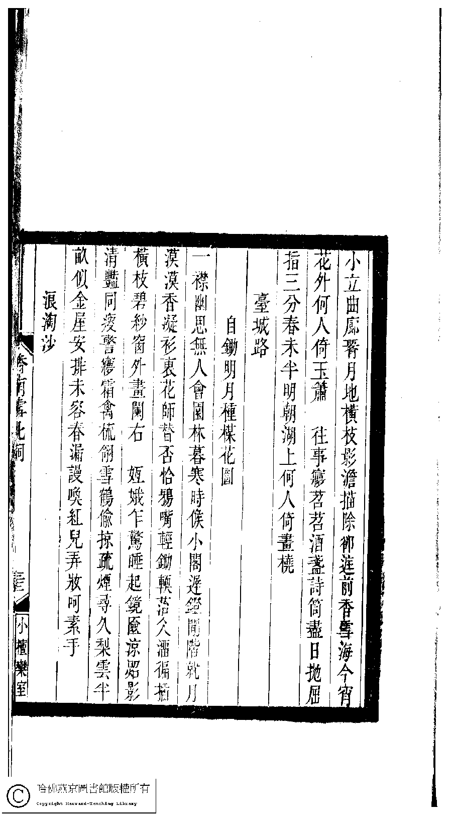 | Appears in: Xiao tan luan shi hui ke gui xiu ci: 10 ji 100 zhong 100 juan (edited by Xu Naichang, Qing dynasty): Xiang nan xue bei ci: 1 juan |