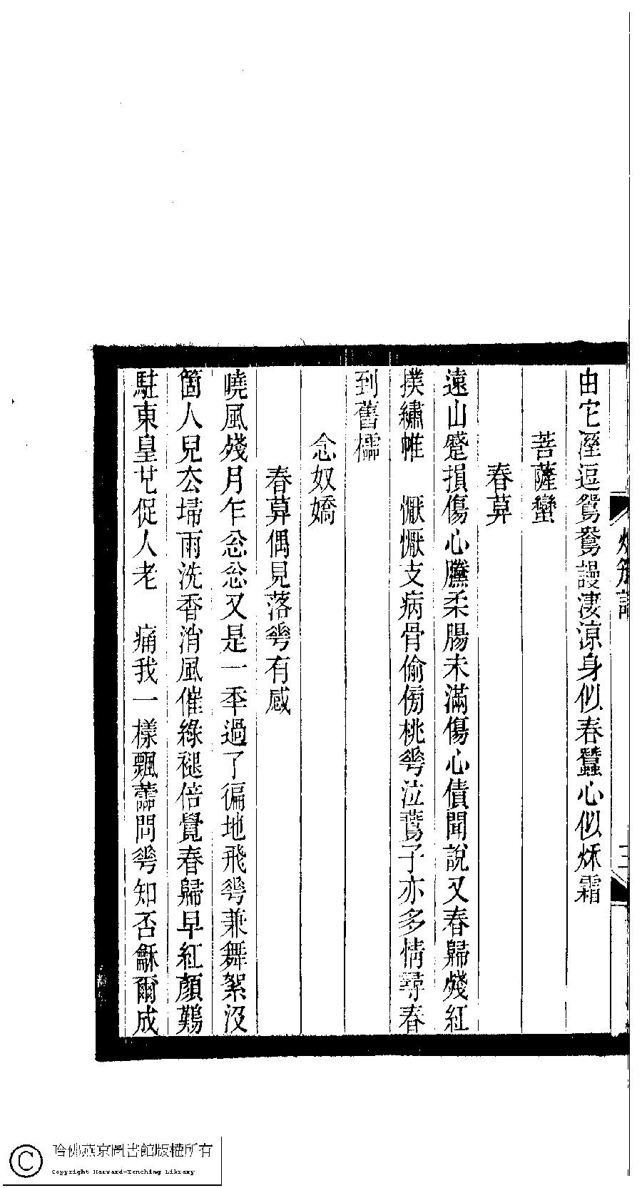 | Appears in: Xiao tan luan shi hui ke gui xiu ci: 10 ji 100 zhong 100 juan (edited by Xu Naichang, Qing dynasty): Qiu jia ci: 1 juan |
