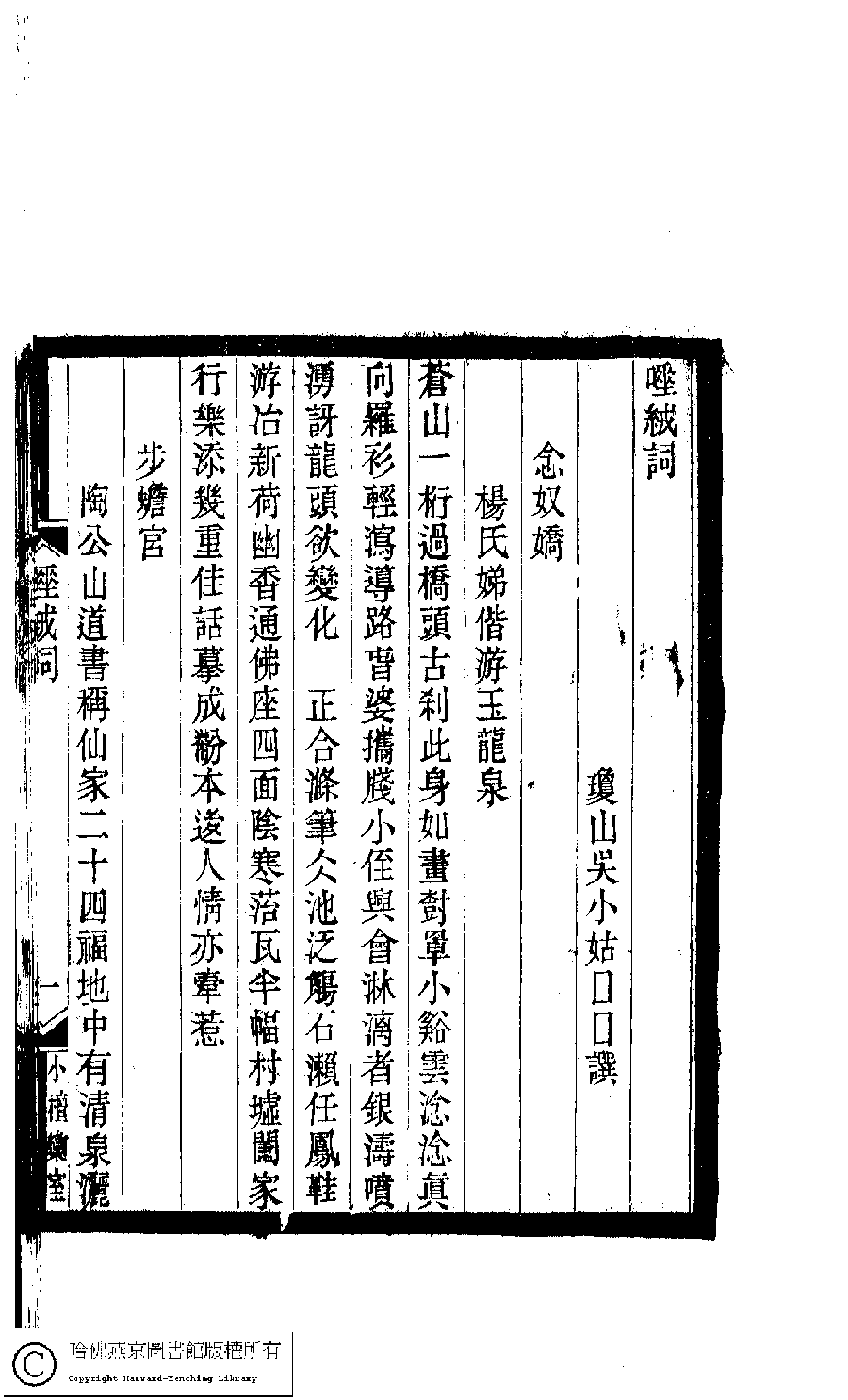 | Appears in: Xiao tan luan shi hui ke gui xiu ci: 10 ji 100 zhong 100 juan (edited by Xu Naichang, Qing dynasty): Tuo rong ci: 1 juan |