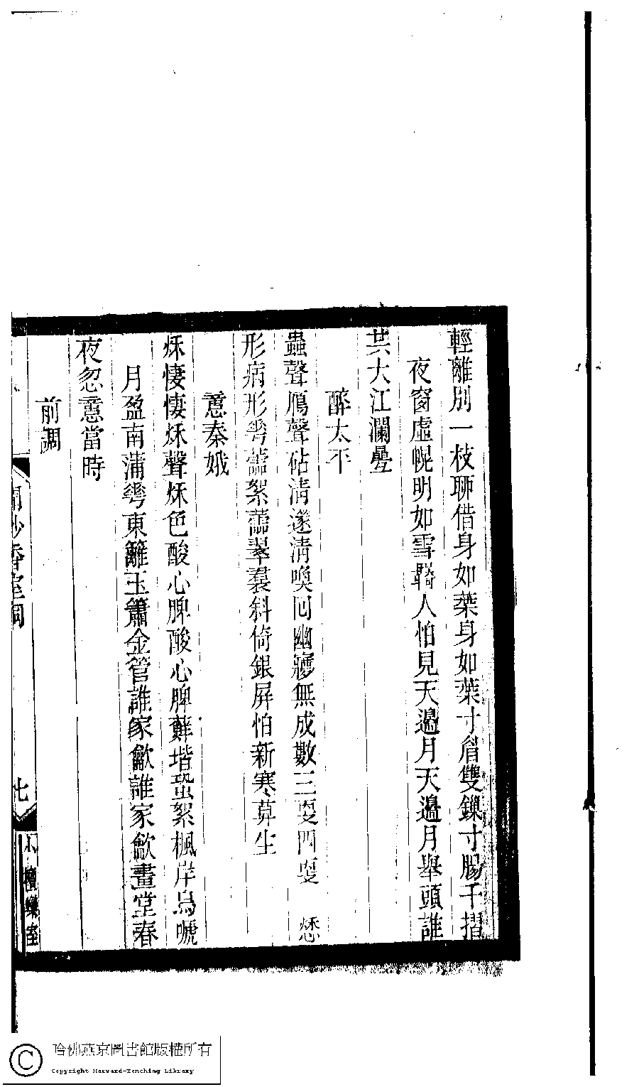 | (PRINT FRIENDLY VERSION) 小檀欒室彙刻閨秀詞﹕十集一百種一百卷(清徐乃昌輯) : 聞妙香室詞﹕一卷。清光緒二十二年(1896)南陵徐氏刻本。 ![]() Page : 聞妙香室詞.7a | click for larger image | Back |