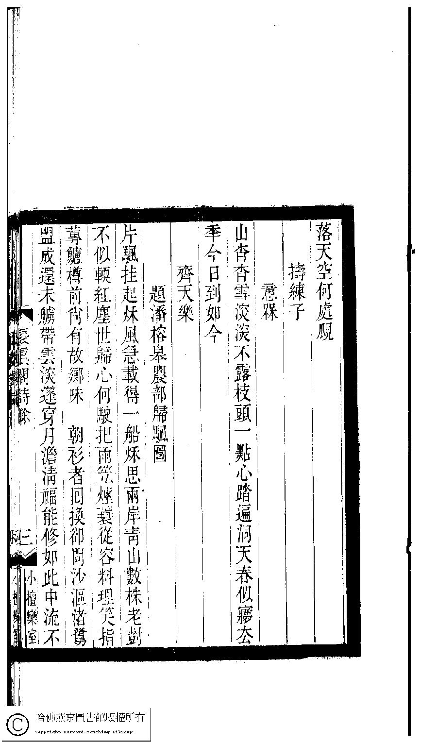 | (PRINT FRIENDLY VERSION) 小檀欒室彙刻閨秀詞﹕十集一百種一百卷(清徐乃昌輯) : 長真閣詩餘﹕一卷。清光緒二十二年(1896)南陵徐氏刻本。 ![]() Page : 長真閣詩餘.3b | click for larger image | 小檀欒室彙刻閨秀詞﹕十集一百種一百卷(清徐乃昌輯) : 長真閣詩餘﹕一卷。清光緒二十二年(1896)南陵徐氏刻本。![]() Page : 長真閣詩餘.3a | click for larger image | Back |