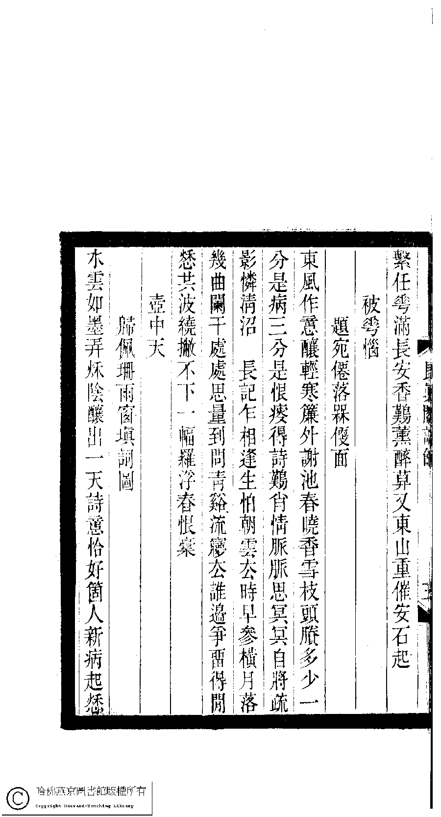 | (PRINT FRIENDLY VERSION) 小檀欒室彙刻閨秀詞﹕十集一百種一百卷(清徐乃昌輯) : 長真閣詩餘﹕一卷。清光緒二十二年(1896)南陵徐氏刻本。 ![]() Page : 長真閣詩餘.3b | click for larger image | Back |
