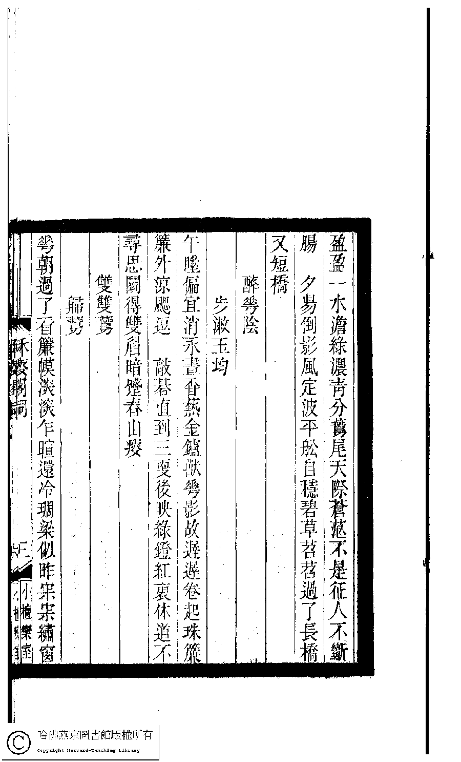 | Appears in: Xiao tan luan shi hui ke gui xiu ci: 10 ji 100 zhong 100 juan (edited by Xu Naichang, Qing dynasty): Qiu shou ge ci: 1 juan |