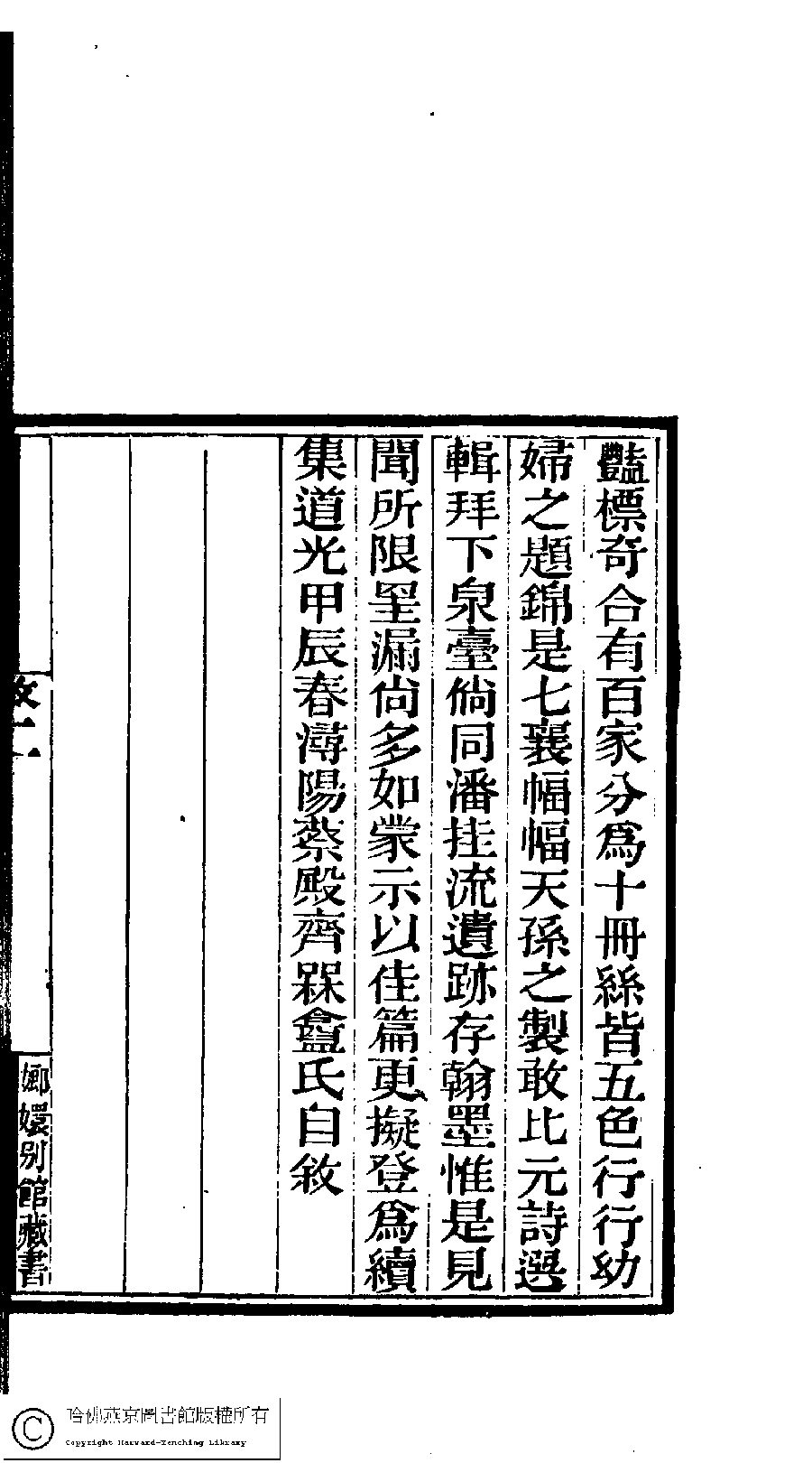 | (PRINT FRIENDLY VERSION) 國朝閨閣詩鈔﹕一百種一百卷(清蔡殿齊輯)。清道光二十四年(1844)刻本。 ![]() Page : 序.2b | click for larger image | 國朝閨閣詩鈔﹕一百種一百卷(清蔡殿齊輯)。清道光二十四年(1844)刻本。![]() Page : 序.2a | click for larger image | 國朝閨閣詩鈔﹕一百種一百卷(清蔡殿齊輯)。清道光二十四年(1844)刻本。![]() Page : 序.1b | click for larger image | 國朝閨閣詩鈔﹕一百種一百卷(清蔡殿齊輯)。清道光二十四年(1844)刻本。![]() Page : 序.1a | click for larger image | Back |