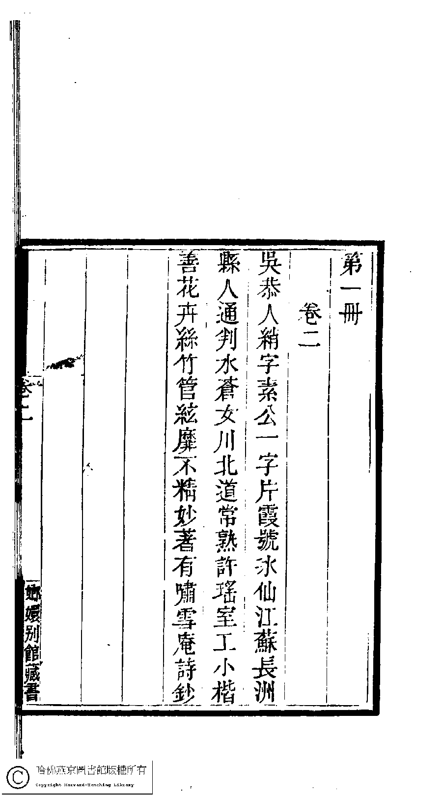 | (PRINT FRIENDLY VERSION) 國朝閨閣詩鈔﹕一百種一百卷(清蔡殿齊輯) : 嘯雪庵詩鈔﹕一卷。清道光二十四年(1844)刻本。 ![]() Page : 1.6b | click for larger image | 國朝閨閣詩鈔﹕一百種一百卷(清蔡殿齊輯) : 嘯雪庵詩鈔﹕一卷。清道光二十四年(1844)刻本。![]() Page : 1.6a | click for larger image | Back |