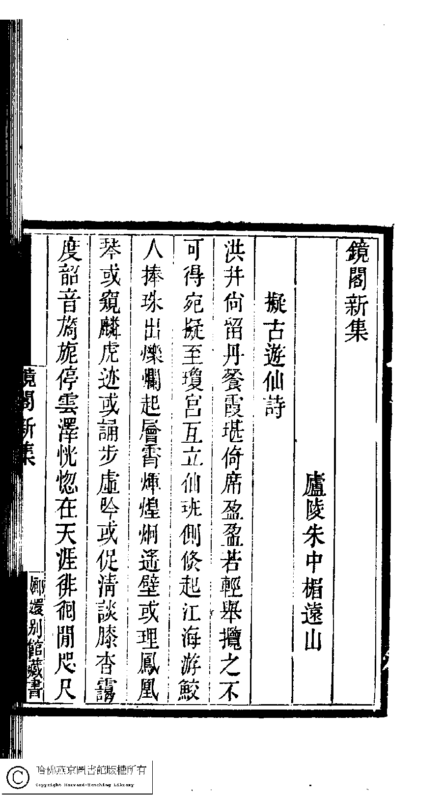 | Appears in: Guo chao gui ge shi chao: 100 zhong 100 juan (edited by Cai Dianqi, Qing dynasty): Jing ge xin ji: 1 juan |