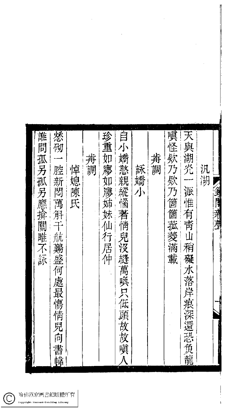 | Appears in: Xiao tan luan shi hui ke gui xiu ci: 10 ji 100 zhong 100 juan (edited by Xu Naichang, Qing dynasty): Jing ge xin sheng: 1 juan |