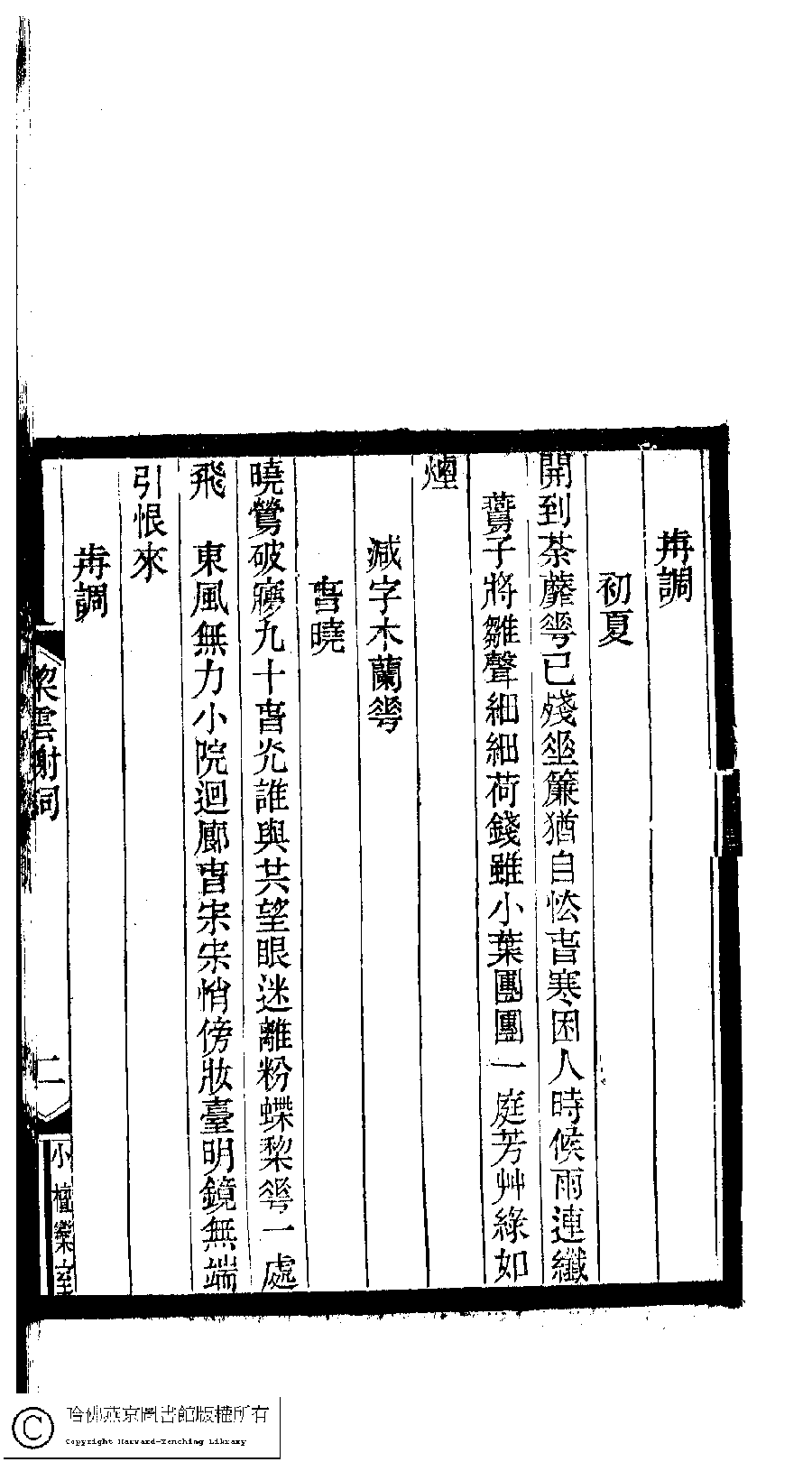 | Appears in: Xiao tan luan shi hui ke gui xiu ci: 10 ji 100 zhong 100 juan (edited by Xu Naichang, Qing dynasty): Li yun xie ci: 1 juan |