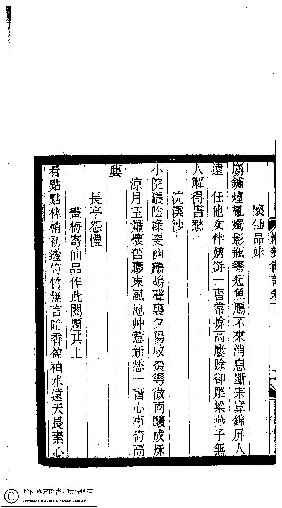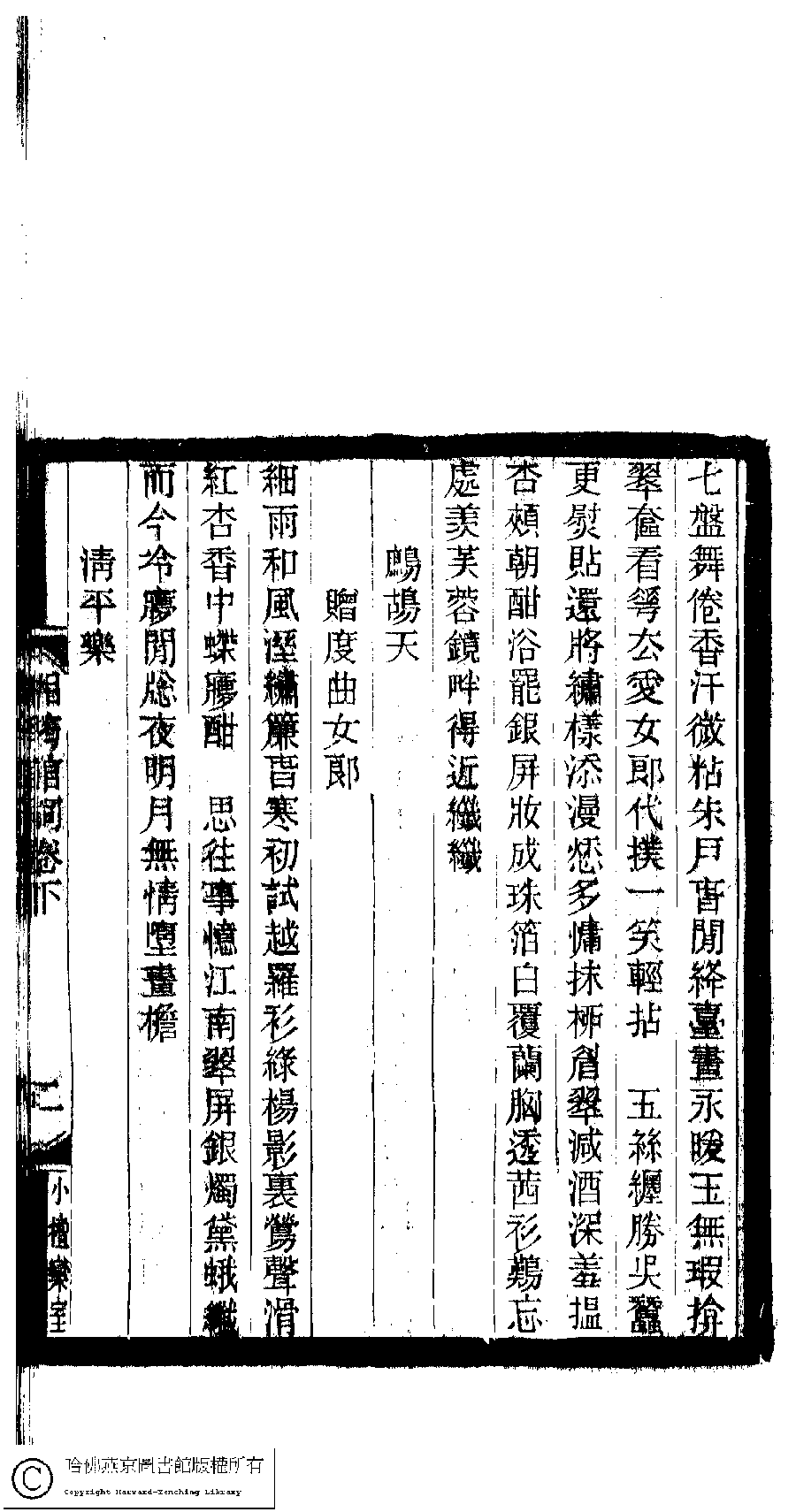 | Appears in: Xiao tan luan shi hui ke gui xiu ci: 10 ji 100 zhong 100 juan (edited by Xu Naichang, Qing dynasty): Xiang yun guan ci: 2 juan |