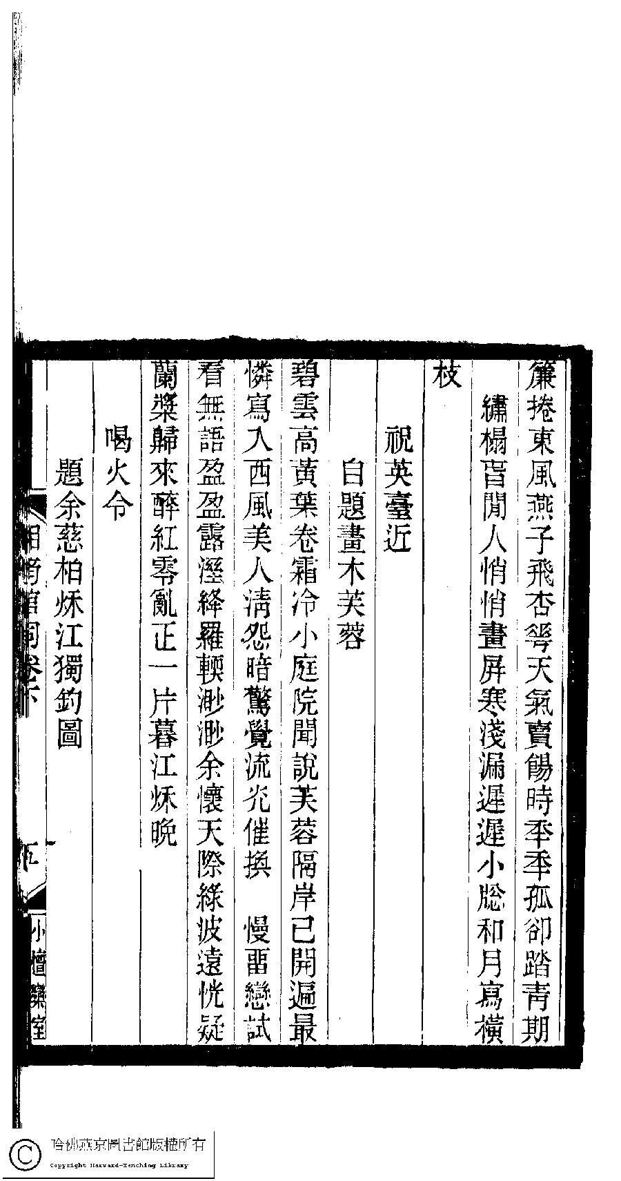 | Appears in: Xiao tan luan shi hui ke gui xiu ci: 10 ji 100 zhong 100 juan (edited by Xu Naichang, Qing dynasty): Xiang yun guan ci: 2 juan |