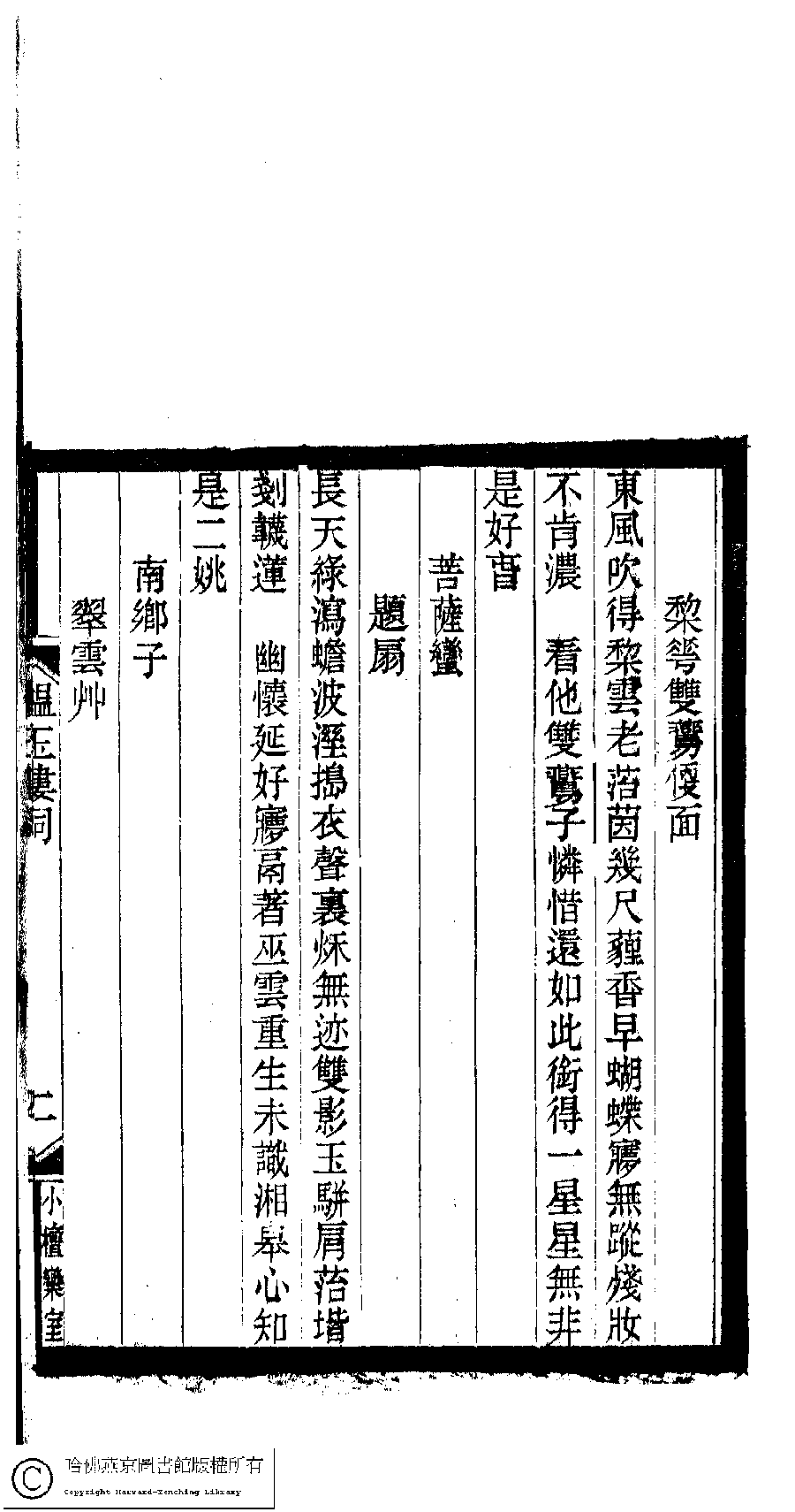 | Appears in: Xiao tan luan shi hui ke gui xiu ci: 10 ji 100 zhong 100 juan (edited by Xu Naichang, Qing dynasty): Yun yu lou ci: 1 juan |