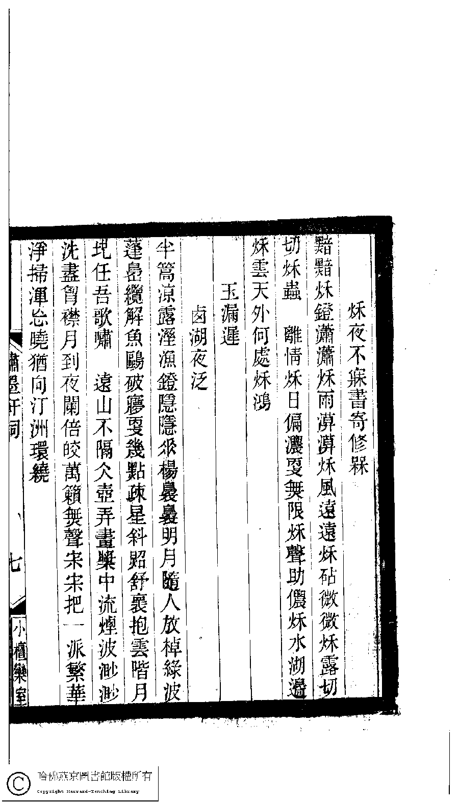 | (PRINT FRIENDLY VERSION) 小檀欒室彙刻閨秀詞﹕十集一百種一百卷(清徐乃昌輯) : 繡墨軒詞﹕一卷。清光緒二十二年(1896)南陵徐氏刻本。 ![]() Page : 繡墨軒詞.7a | click for larger image | 小檀欒室彙刻閨秀詞﹕十集一百種一百卷(清徐乃昌輯) : 繡墨軒詞﹕一卷。清光緒二十二年(1896)南陵徐氏刻本。![]() Page : 繡墨軒詞.6b | click for larger image | Back |