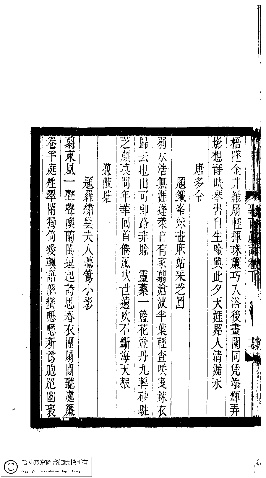 | (PRINT FRIENDLY VERSION) 小檀欒室彙刻閨秀詞﹕十集一百種一百卷(清徐乃昌輯) : 聽雨樓詞﹕二卷。清光緒二十二年(1896)南陵徐氏刻本。 ![]() Page : 聽雨樓詞.下.17b | click for larger image | Back |