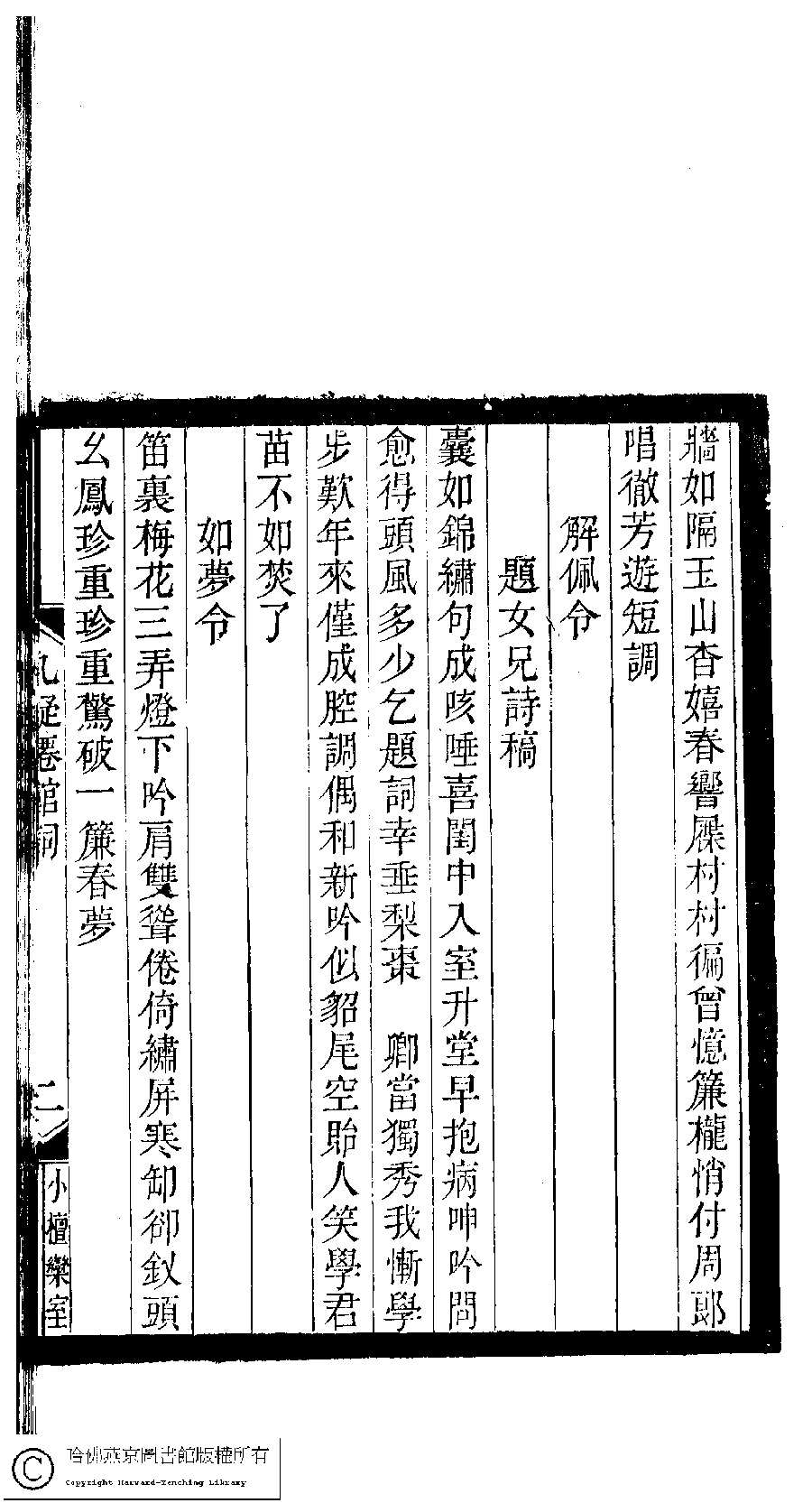 | Appears in: Xiao tan luan shi hui ke gui xiu ci: 10 ji 100 zhong 100 juan (edited by Xu Naichang, Qing dynasty): Jiu yi xian guan ci: 1 juan |