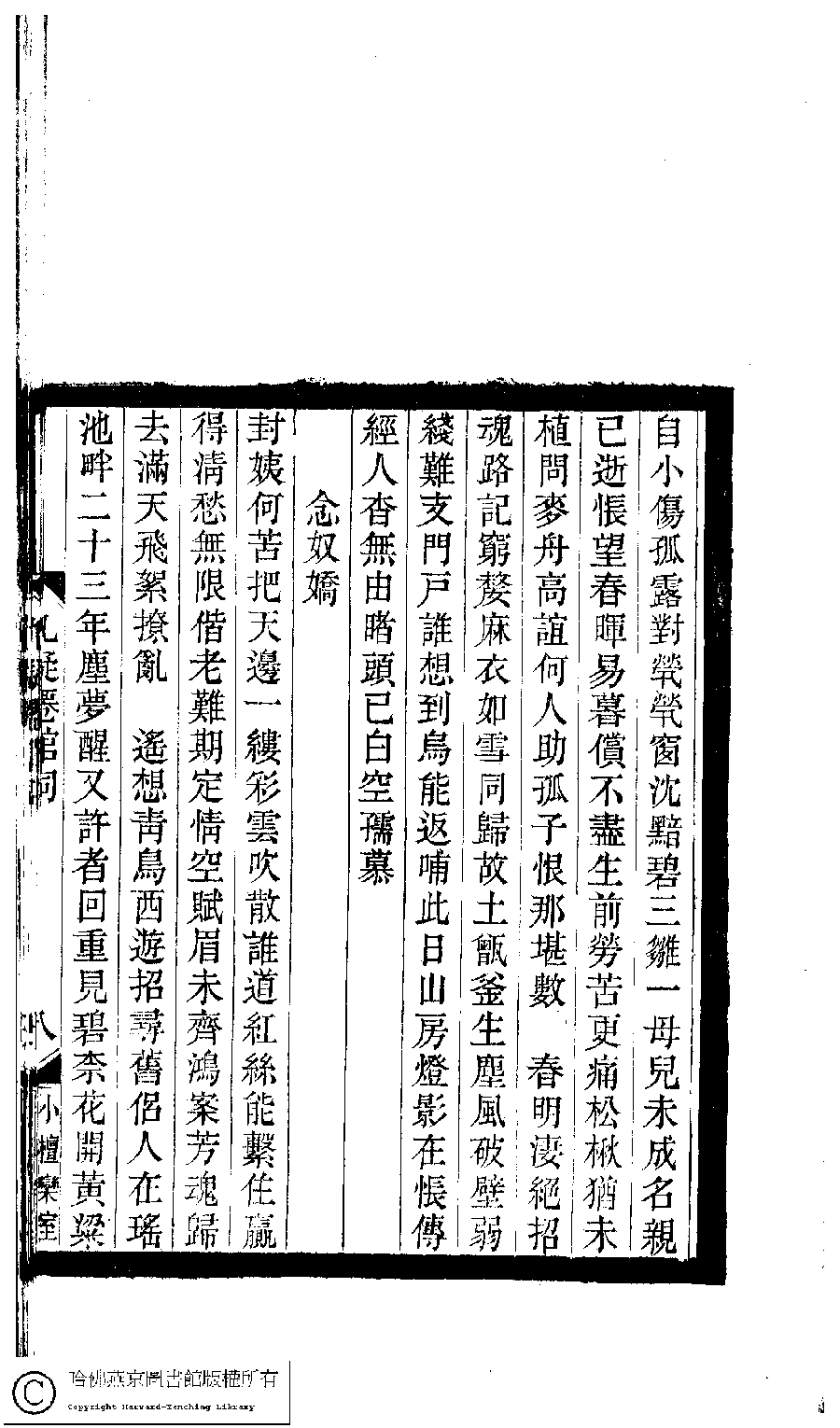 | (PRINT FRIENDLY VERSION) 小檀欒室彙刻閨秀詞﹕十集一百種一百卷(清徐乃昌輯) : 九疑仙館詞﹕一卷。清光緒二十二年(1896)南陵徐氏刻本。 ![]() Page : 九疑仙館詞.8b | click for larger image | 小檀欒室彙刻閨秀詞﹕十集一百種一百卷(清徐乃昌輯) : 九疑仙館詞﹕一卷。清光緒二十二年(1896)南陵徐氏刻本。![]() Page : 九疑仙館詞.8a | click for larger image | Back |