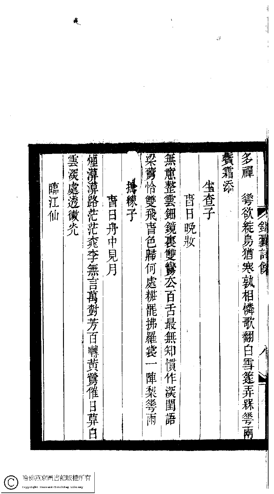 | Appears in: Xiao tan luan shi hui ke gui xiu ci: 10 ji 100 zhong 100 juan (edited by Xu Naichang, Qing dynasty): Jin nang shi yu: 1 juan |