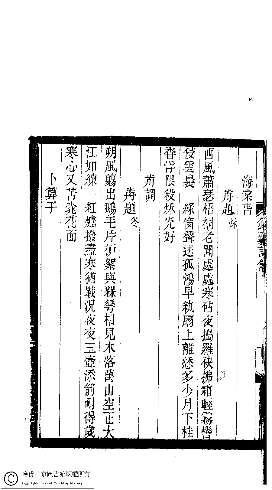 | Appears in: Xiao tan luan shi hui ke gui xiu ci: 10 ji 100 zhong 100 juan (edited by Xu Naichang, Qing dynasty): Jin nang shi yu: 1 juan |