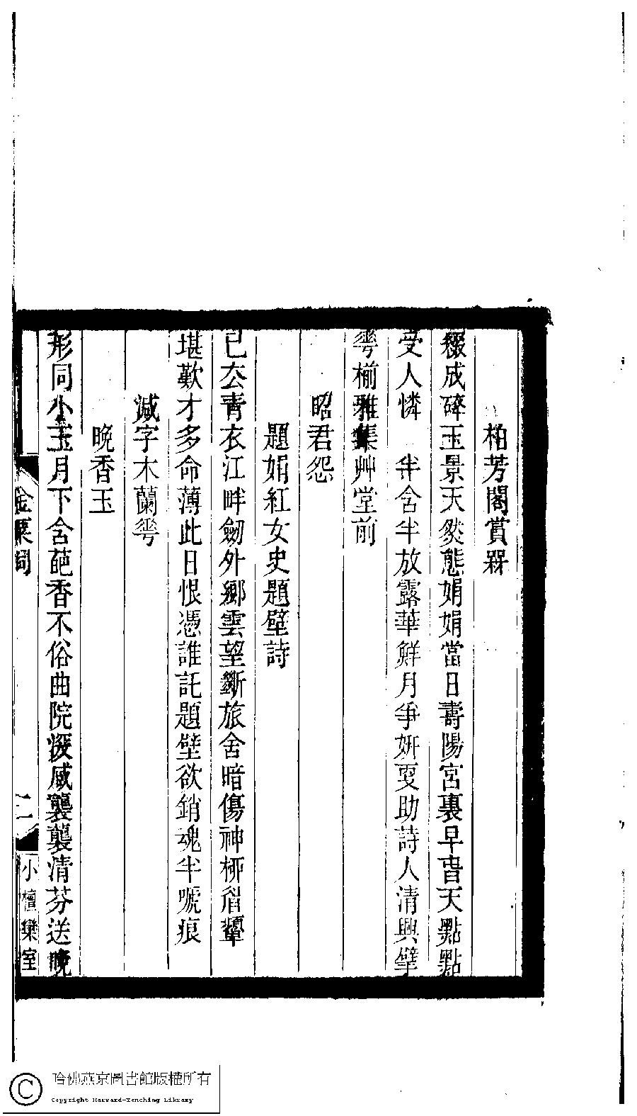 | Appears in: Xiao tan luan shi hui ke gui xiu ci: 10 ji 100 zhong 100 juan (edited by Xu Naichang, Qing dynasty): Jin su ci: 1 juan |