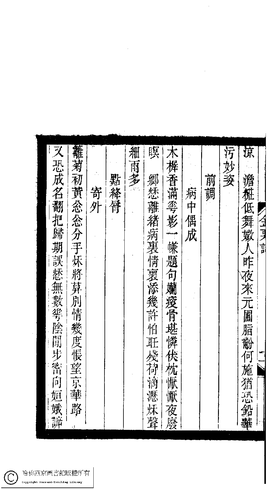 | Appears in: Xiao tan luan shi hui ke gui xiu ci: 10 ji 100 zhong 100 juan (edited by Xu Naichang, Qing dynasty): Jin su ci: 1 juan |