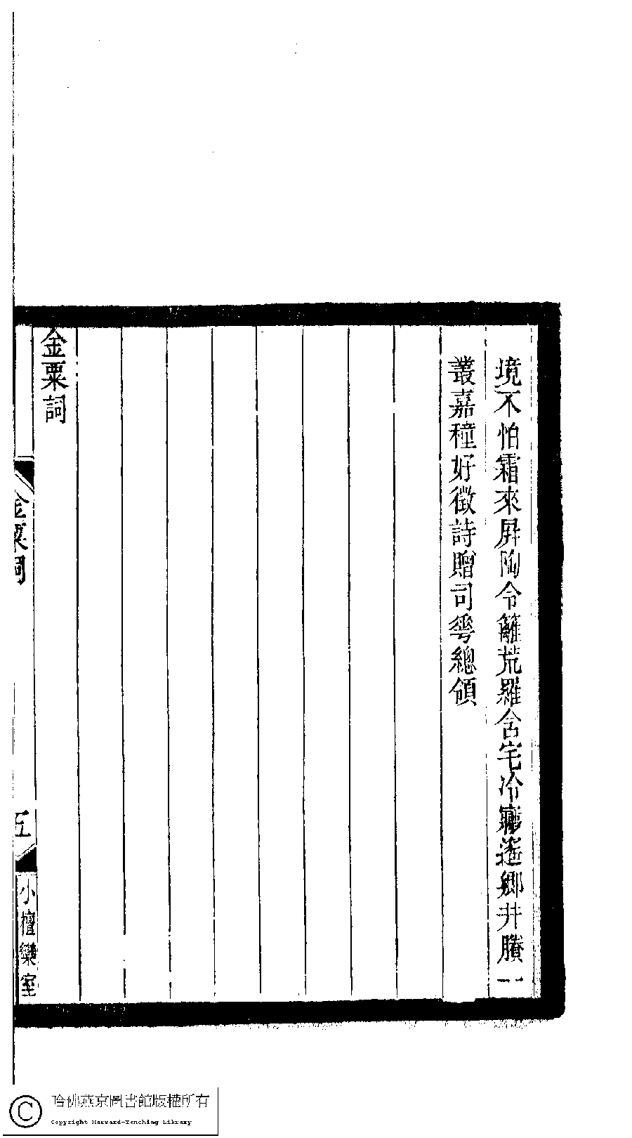 | (PRINT FRIENDLY VERSION) 小檀欒室彙刻閨秀詞﹕十集一百種一百卷(清徐乃昌輯) : 金粟詞﹕一卷。清光緒二十二年(1896)南陵徐氏刻本。 ![]() Page : 金粟詞.5a | click for larger image | 小檀欒室彙刻閨秀詞﹕十集一百種一百卷(清徐乃昌輯) : 金粟詞﹕一卷。清光緒二十二年(1896)南陵徐氏刻本。![]() Page : 金粟詞.4b | click for larger image | Back |