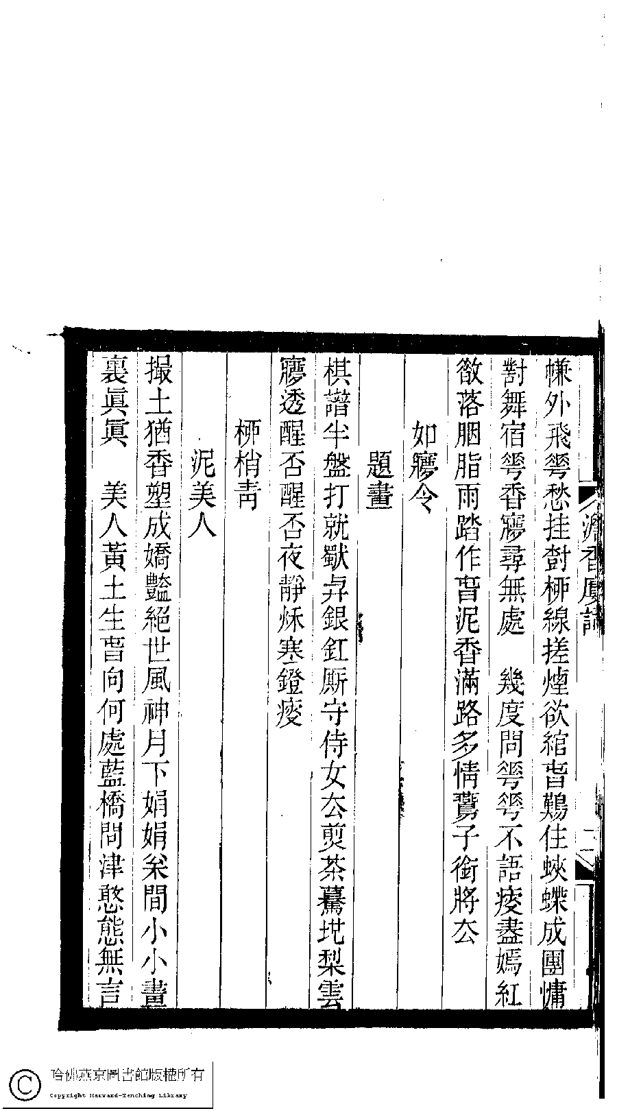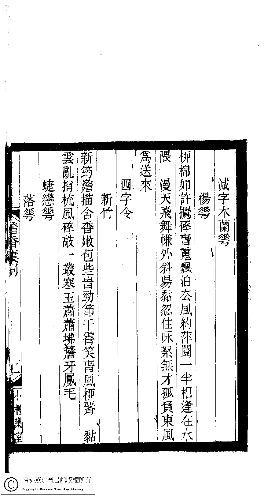 | (PRINT FRIENDLY VERSION) 小檀欒室彙刻閨秀詞﹕十集一百種一百卷(清徐乃昌輯) : 澹香樓詞﹕一卷。清光緒二十二年(1896)南陵徐氏刻本。 ![]() Page : 澹香樓詞.2b | click for larger image | 小檀欒室彙刻閨秀詞﹕十集一百種一百卷(清徐乃昌輯) : 澹香樓詞﹕一卷。清光緒二十二年(1896)南陵徐氏刻本。![]() Page : 澹香樓詞.2a | click for larger image | Back |