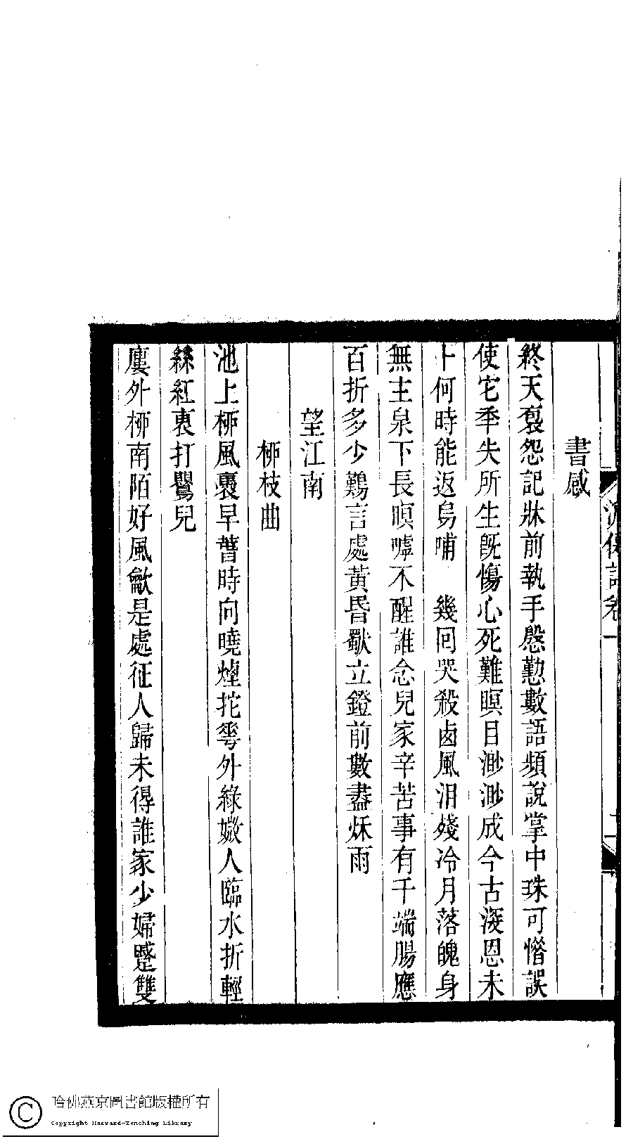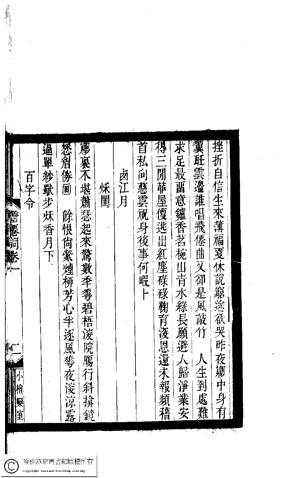 | (PRINT FRIENDLY VERSION) 小檀欒室彙刻閨秀詞﹕十集一百種一百卷(清徐乃昌輯) : 澹僊詞﹕四卷。清光緒二十二年(1896)南陵徐氏刻本。 ![]() Page : 澹僊詞.卷1.2b | click for larger image | 小檀欒室彙刻閨秀詞﹕十集一百種一百卷(清徐乃昌輯) : 澹僊詞﹕四卷。清光緒二十二年(1896)南陵徐氏刻本。![]() Page : 澹僊詞.卷1.2a | click for larger image | Back |
