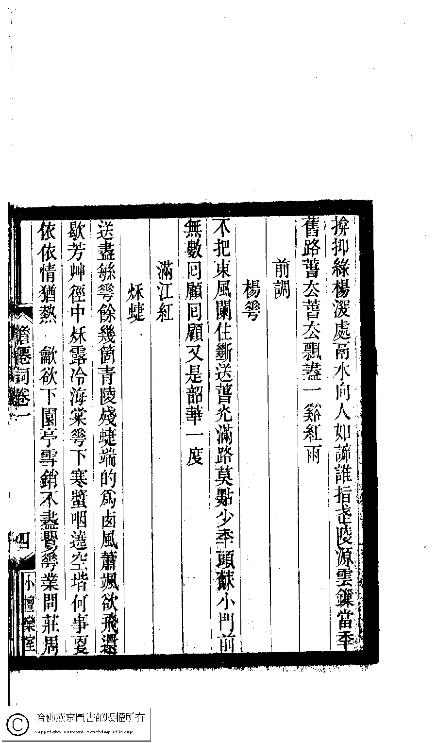 | Appears in: Xiao tan luan shi hui ke gui xiu ci: 10 ji 100 zhong 100 juan (edited by Xu Naichang, Qing dynasty): Dan xian ci: 4 juan |