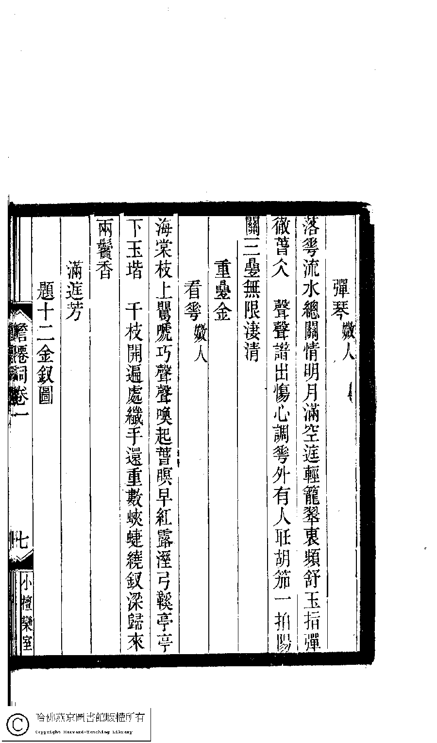 | Appears in: Xiao tan luan shi hui ke gui xiu ci: 10 ji 100 zhong 100 juan (edited by Xu Naichang, Qing dynasty): Dan xian ci: 4 juan |