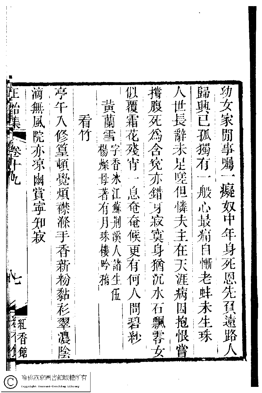 | (PRINT FRIENDLY VERSION) 國朝閨秀正始集﹕二十卷﹐附錄﹕一卷﹐補遺﹕一卷﹐又附題詞﹕一卷(清惲珠輯)。清道光十一年(1831)紅香館刻本。 ![]() Page : 19.7a | click for larger image | Back |