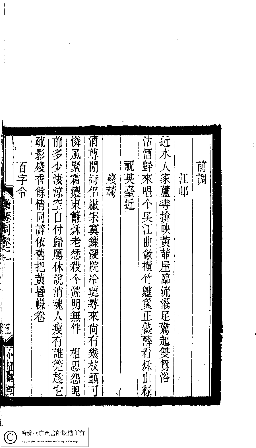 | Appears in: Xiao tan luan shi hui ke gui xiu ci: 10 ji 100 zhong 100 juan (edited by Xu Naichang, Qing dynasty): Dan xian ci: 4 juan |