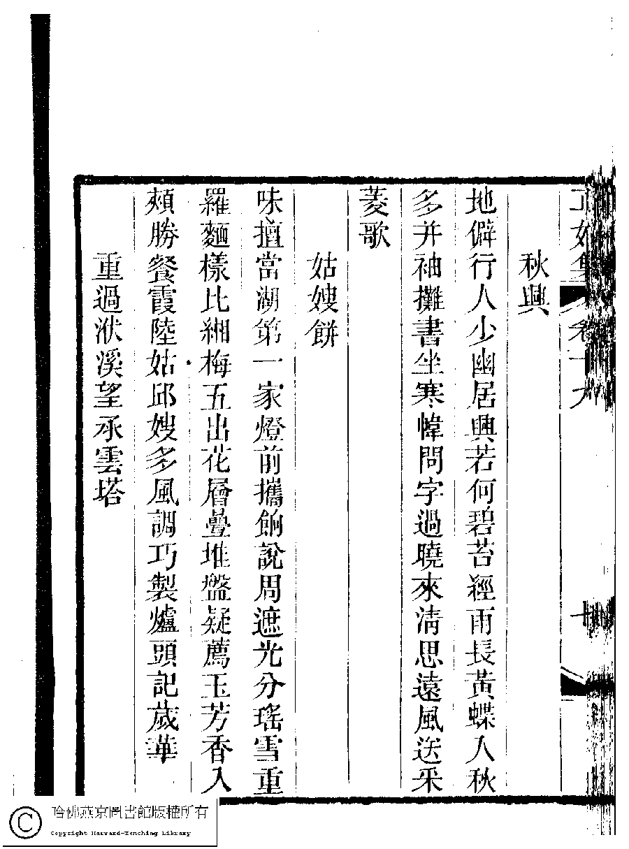 | (PRINT FRIENDLY VERSION) 國朝閨秀正始集﹕二十卷﹐附錄﹕一卷﹐補遺﹕一卷﹐又附題詞﹕一卷(清惲珠輯)。清道光十一年(1831)紅香館刻本。 ![]() Page : 19.7b | click for larger image | Back |