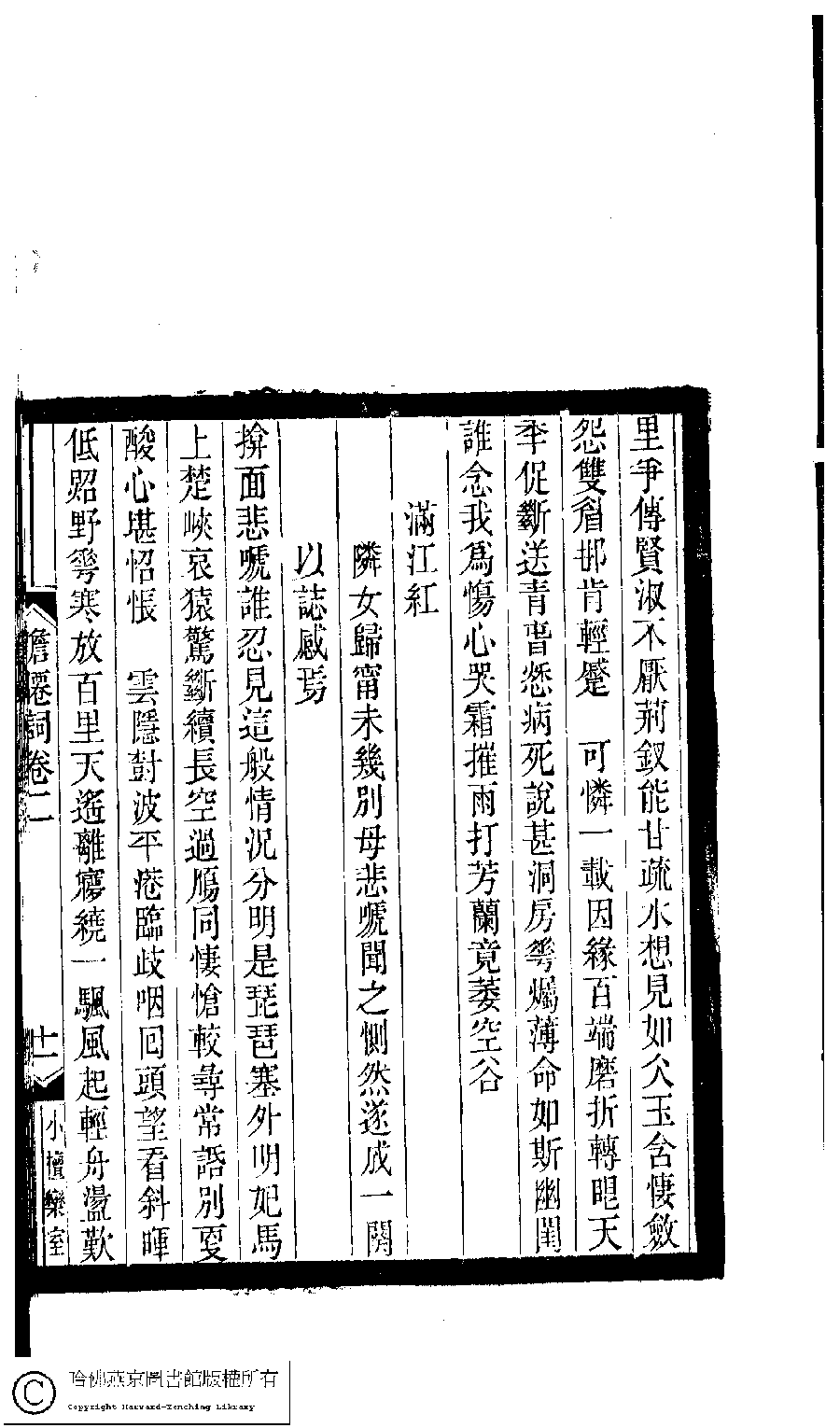 | (PRINT FRIENDLY VERSION) 小檀欒室彙刻閨秀詞﹕十集一百種一百卷(清徐乃昌輯) : 澹僊詞﹕四卷。清光緒二十二年(1896)南陵徐氏刻本。 ![]() Page : 澹僊詞.卷2.11b | click for larger image | 小檀欒室彙刻閨秀詞﹕十集一百種一百卷(清徐乃昌輯) : 澹僊詞﹕四卷。清光緒二十二年(1896)南陵徐氏刻本。![]() Page : 澹僊詞.卷2.11a | click for larger image | Back |