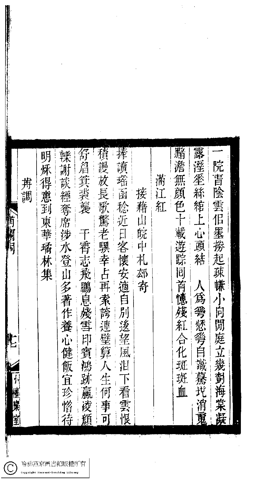 | (PRINT FRIENDLY VERSION) 小檀欒室彙刻閨秀詞﹕十集一百種一百卷(清徐乃昌輯) : 補欄詞﹕一卷。清光緒二十二年(1896)南陵徐氏刻本。 ![]() Page : 補欄詞.17a | click for larger image | 小檀欒室彙刻閨秀詞﹕十集一百種一百卷(清徐乃昌輯) : 補欄詞﹕一卷。清光緒二十二年(1896)南陵徐氏刻本。![]() Page : 補欄詞.16b | click for larger image | Back |