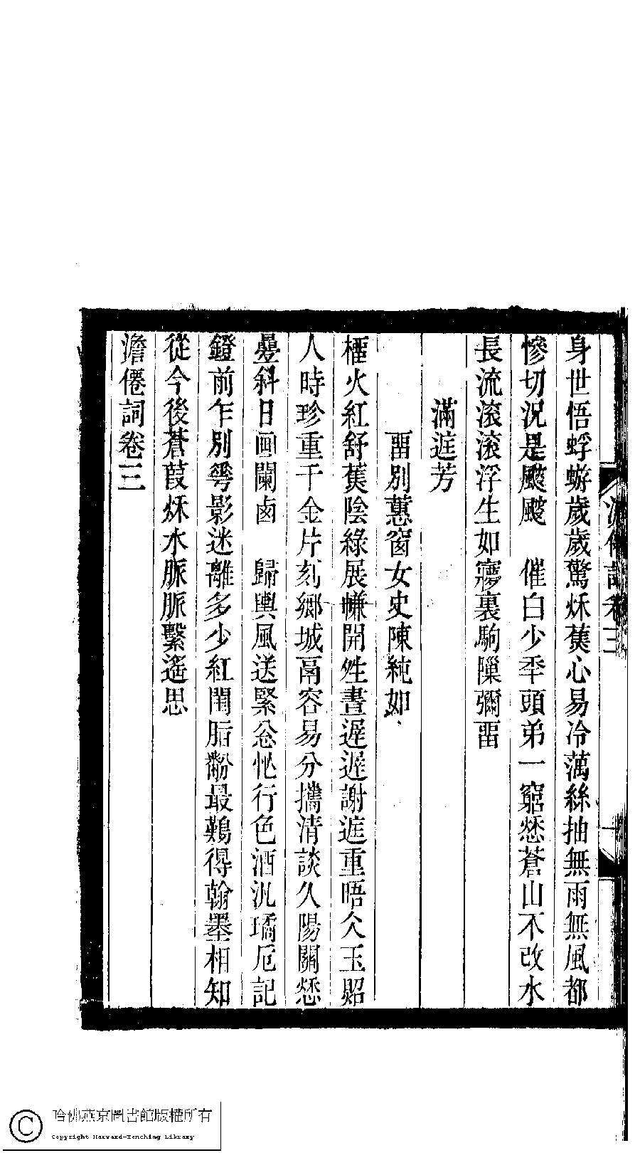 | (PRINT FRIENDLY VERSION) 小檀欒室彙刻閨秀詞﹕十集一百種一百卷(清徐乃昌輯) : 澹僊詞﹕四卷。清光緒二十二年(1896)南陵徐氏刻本。 ![]() Page : 澹僊詞.卷3.10b | click for larger image | Back |