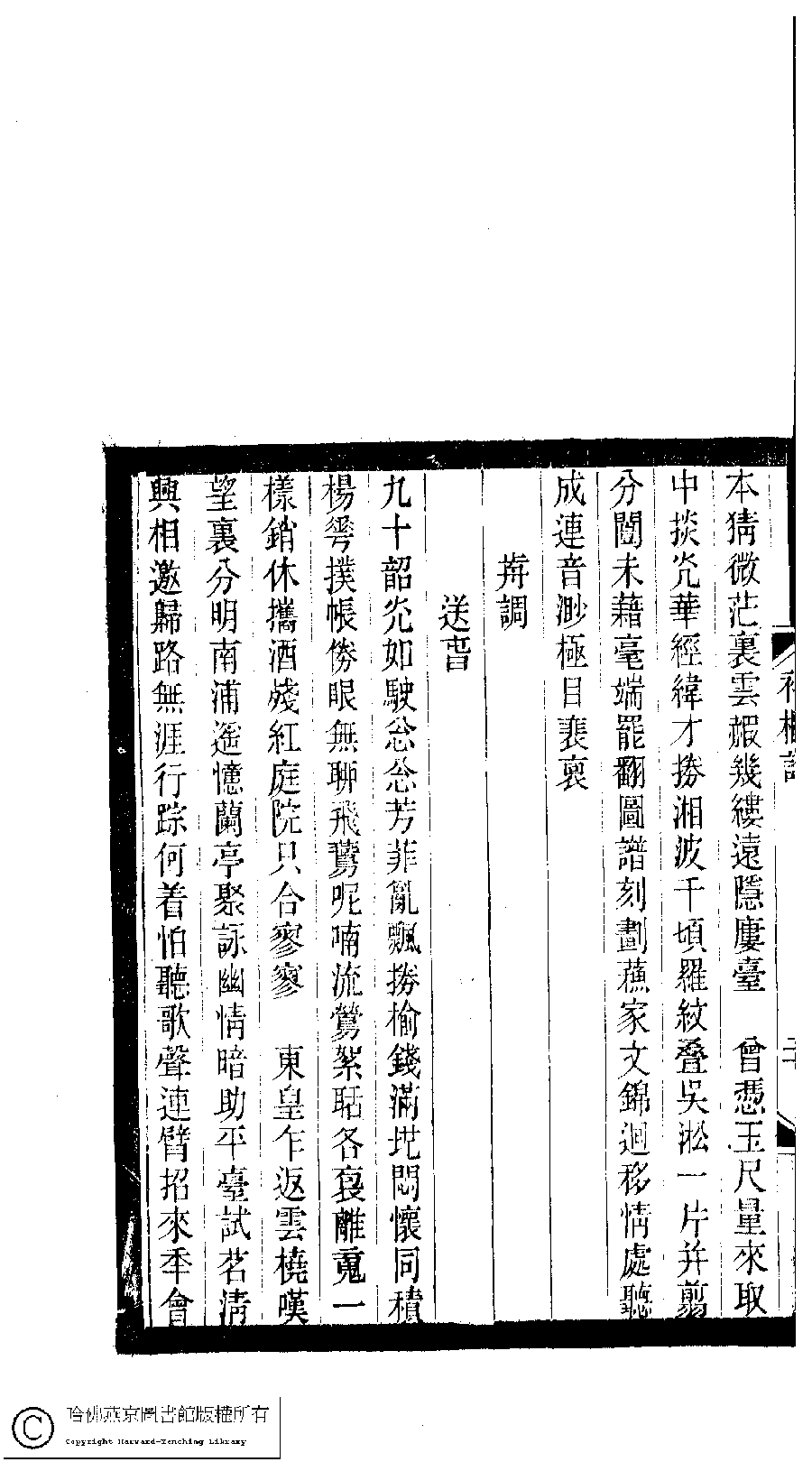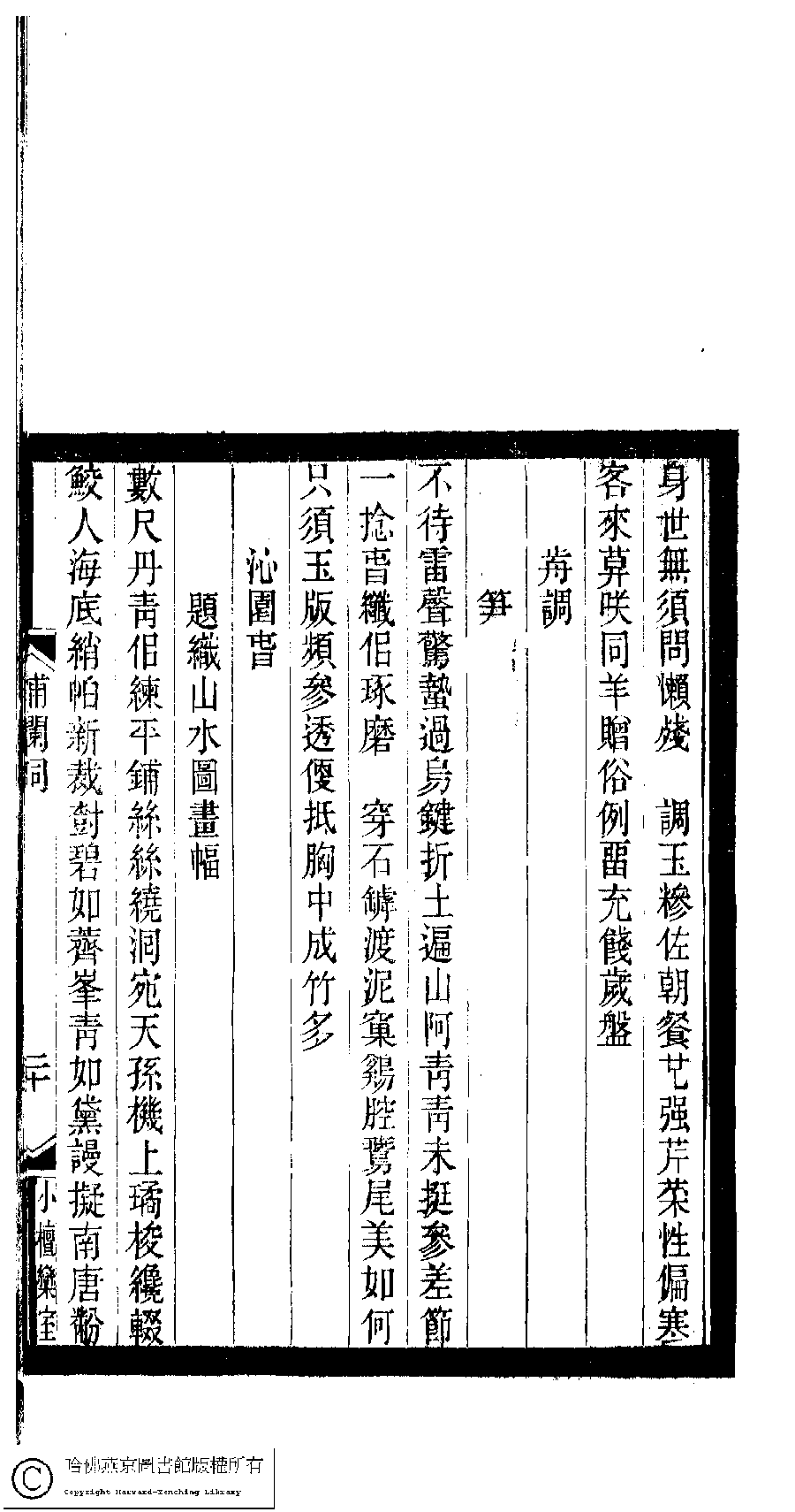 | (PRINT FRIENDLY VERSION) 小檀欒室彙刻閨秀詞﹕十集一百種一百卷(清徐乃昌輯) : 補欄詞﹕一卷。清光緒二十二年(1896)南陵徐氏刻本。 ![]() Page : 補欄詞.20b | click for larger image | 小檀欒室彙刻閨秀詞﹕十集一百種一百卷(清徐乃昌輯) : 補欄詞﹕一卷。清光緒二十二年(1896)南陵徐氏刻本。![]() Page : 補欄詞.20a | click for larger image | Back |