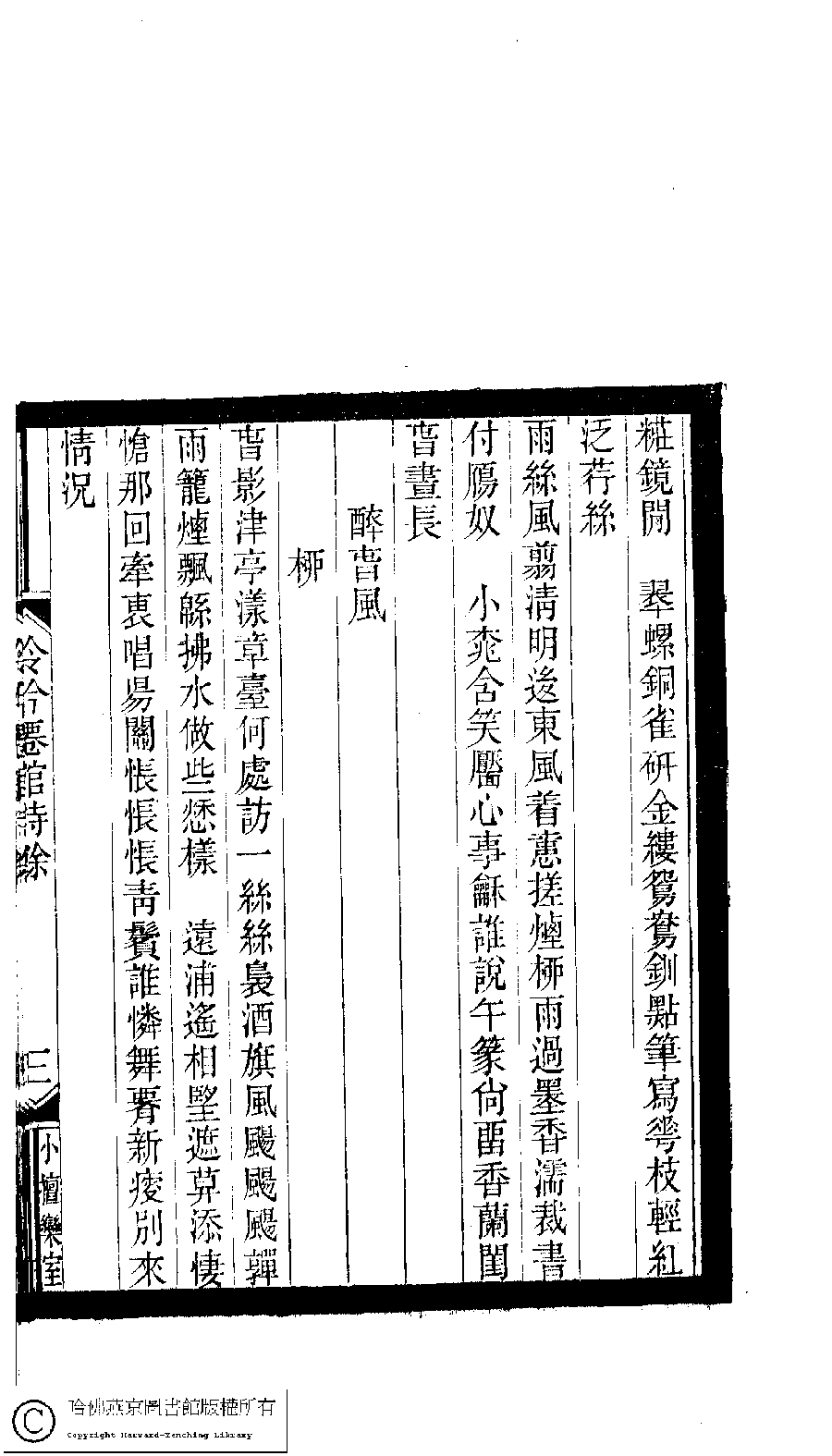 | (PRINT FRIENDLY VERSION) 小檀欒室彙刻閨秀詞﹕十集一百種一百卷(清徐乃昌輯) : 冷吟仙館詩餘﹕一卷。清光緒二十二年(1896)南陵徐氏刻本。 ![]() Page : 冷吟仙館詩餘.3a | click for larger image | Back |