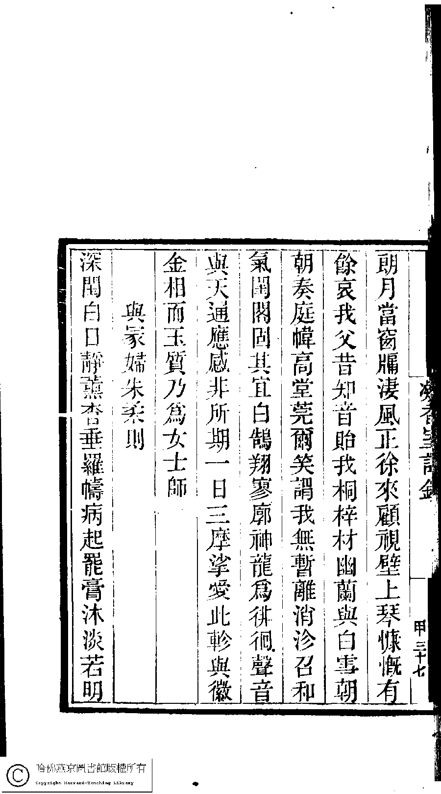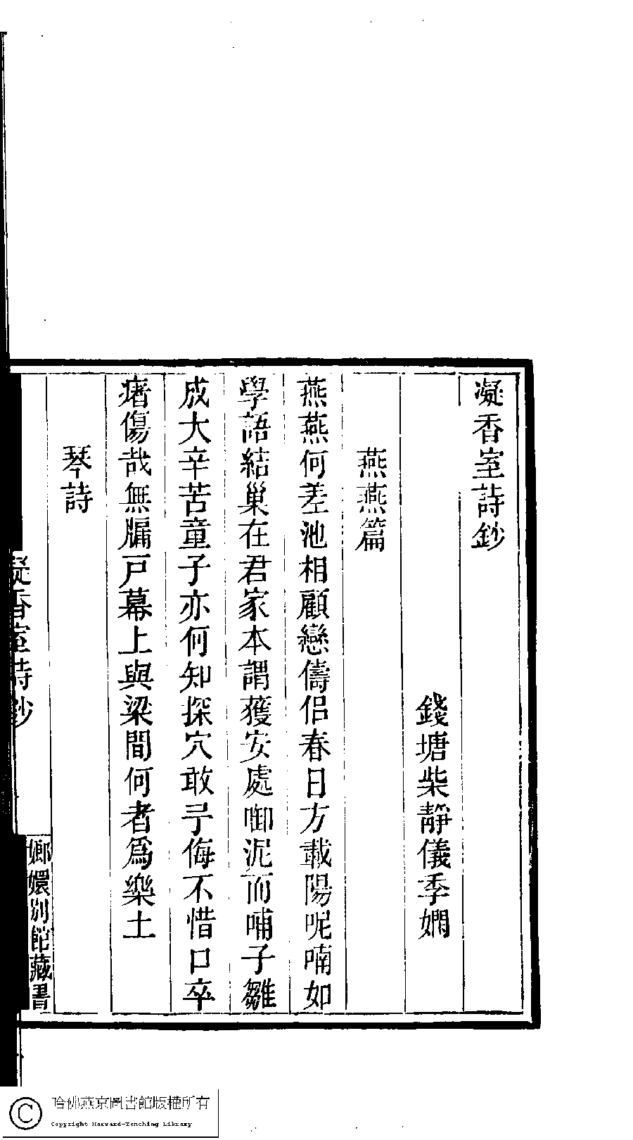 | (PRINT FRIENDLY VERSION) 國朝閨閣詩鈔﹕一百種一百卷(清蔡殿齊輯) : 凝香室詩鈔﹕一卷。清道光二十四年(1844)刻本。 ![]() Page : 1.37b | click for larger image | 國朝閨閣詩鈔﹕一百種一百卷(清蔡殿齊輯) : 凝香室詩鈔﹕一卷。清道光二十四年(1844)刻本。![]() Page : 1.37a | click for larger image | Back |