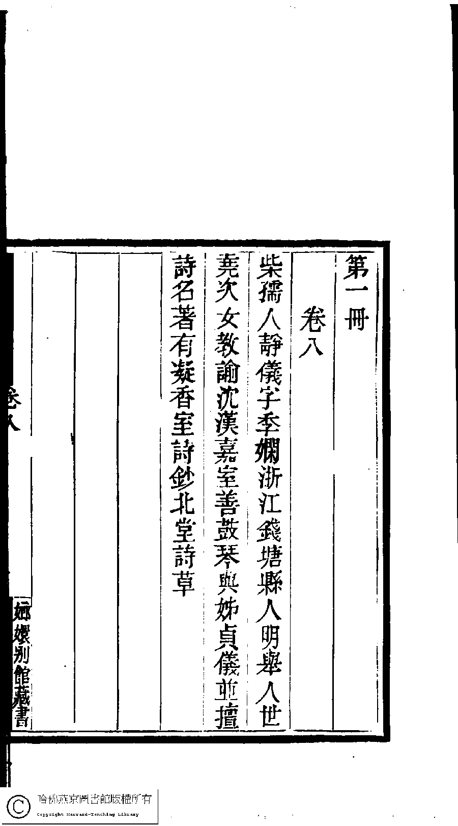 | (PRINT FRIENDLY VERSION) 國朝閨閣詩鈔﹕一百種一百卷(清蔡殿齊輯) : 凝香室詩鈔﹕一卷。清道光二十四年(1844)刻本。 ![]() Page : 1.36b | click for larger image | 國朝閨閣詩鈔﹕一百種一百卷(清蔡殿齊輯) : 凝香室詩鈔﹕一卷。清道光二十四年(1844)刻本。![]() Page : 1.36a | click for larger image | Back |