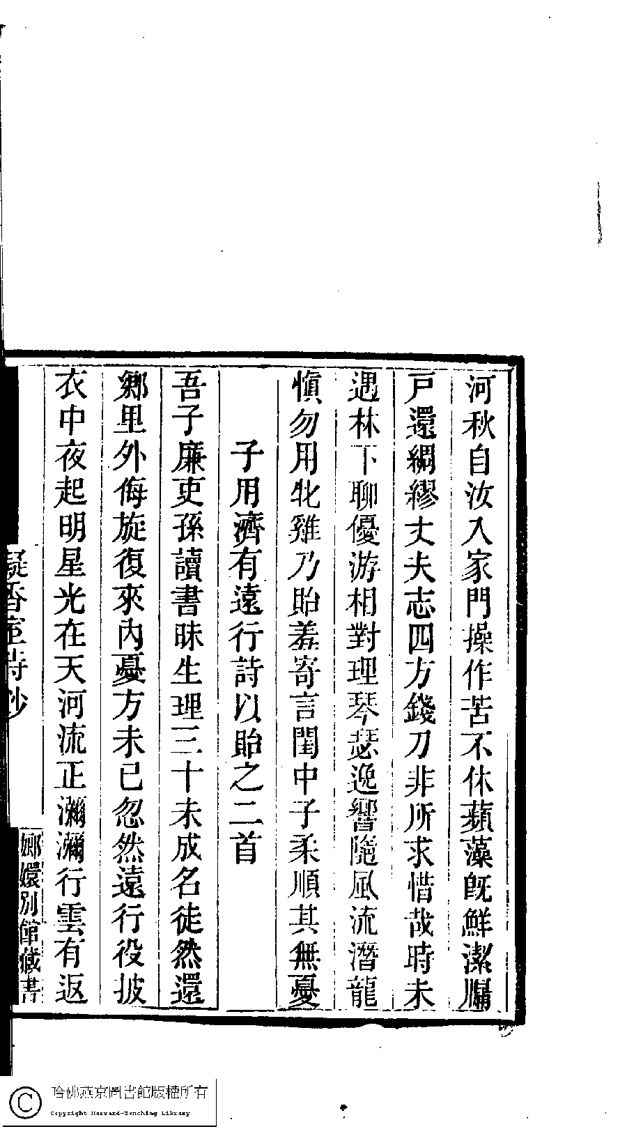 | (PRINT FRIENDLY VERSION) 國朝閨閣詩鈔﹕一百種一百卷(清蔡殿齊輯) : 凝香室詩鈔﹕一卷。清道光二十四年(1844)刻本。 ![]() Page : 1.38b | click for larger image | 國朝閨閣詩鈔﹕一百種一百卷(清蔡殿齊輯) : 凝香室詩鈔﹕一卷。清道光二十四年(1844)刻本。![]() Page : 1.38a | click for larger image | Back |