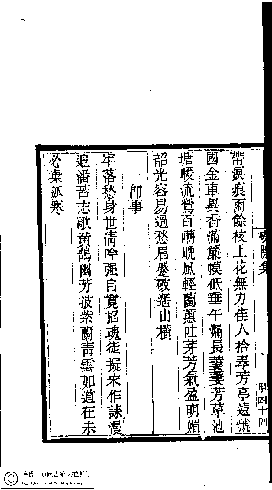 | Appears in: Guo chao gui ge shi chao: 100 zhong 100 juan (edited by Cai Dianqi, Qing dynasty): Yan yin ji: 1 juan |