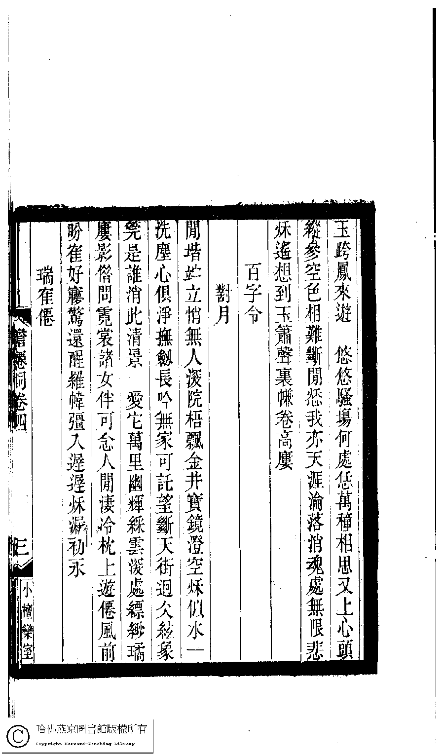 | Appears in: Xiao tan luan shi hui ke gui xiu ci: 10 ji 100 zhong 100 juan (edited by Xu Naichang, Qing dynasty): Dan xian ci: 4 juan |