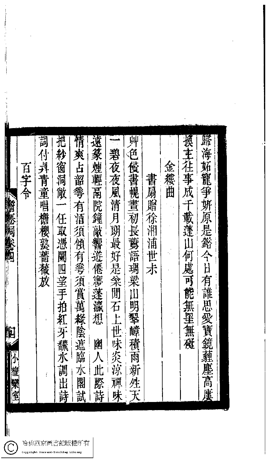 | Appears in: Xiao tan luan shi hui ke gui xiu ci: 10 ji 100 zhong 100 juan (edited by Xu Naichang, Qing dynasty): Dan xian ci: 4 juan |