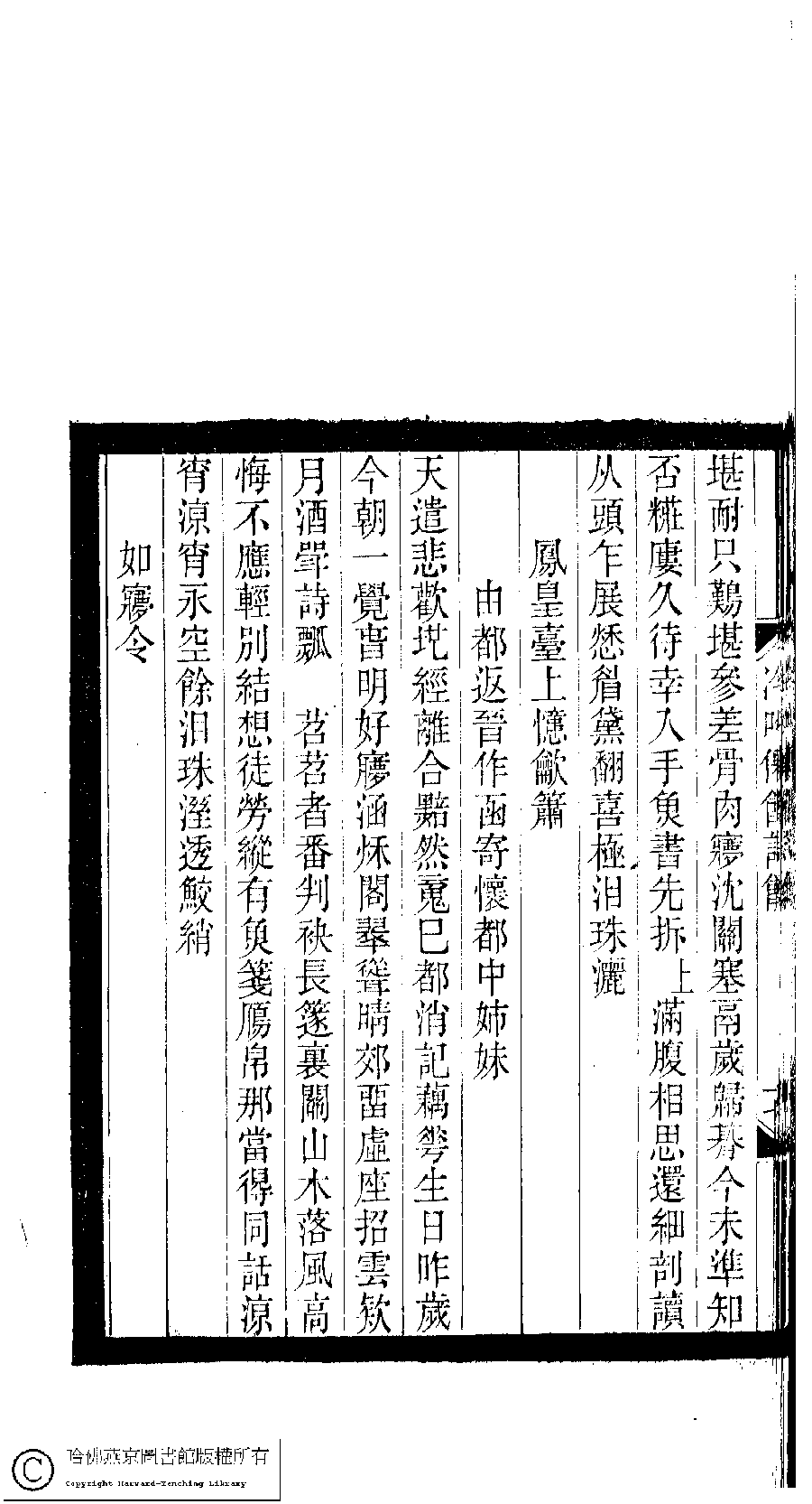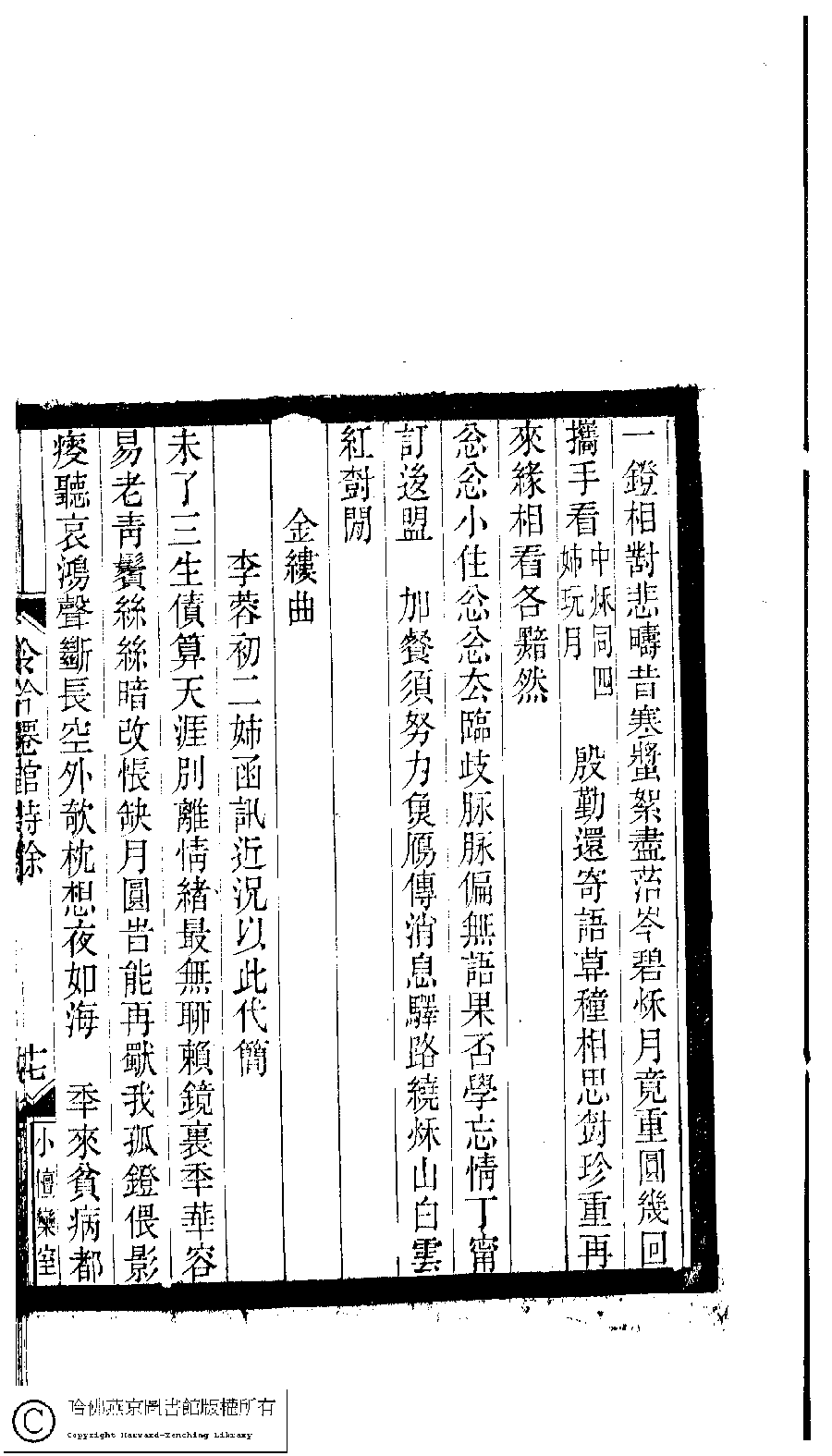 | (PRINT FRIENDLY VERSION) 小檀欒室彙刻閨秀詞﹕十集一百種一百卷(清徐乃昌輯) : 冷吟仙館詩餘﹕一卷。清光緒二十二年(1896)南陵徐氏刻本。 ![]() Page : 冷吟仙館詩餘.17b | click for larger image | 小檀欒室彙刻閨秀詞﹕十集一百種一百卷(清徐乃昌輯) : 冷吟仙館詩餘﹕一卷。清光緒二十二年(1896)南陵徐氏刻本。![]() Page : 冷吟仙館詩餘.17a | click for larger image | Back |
