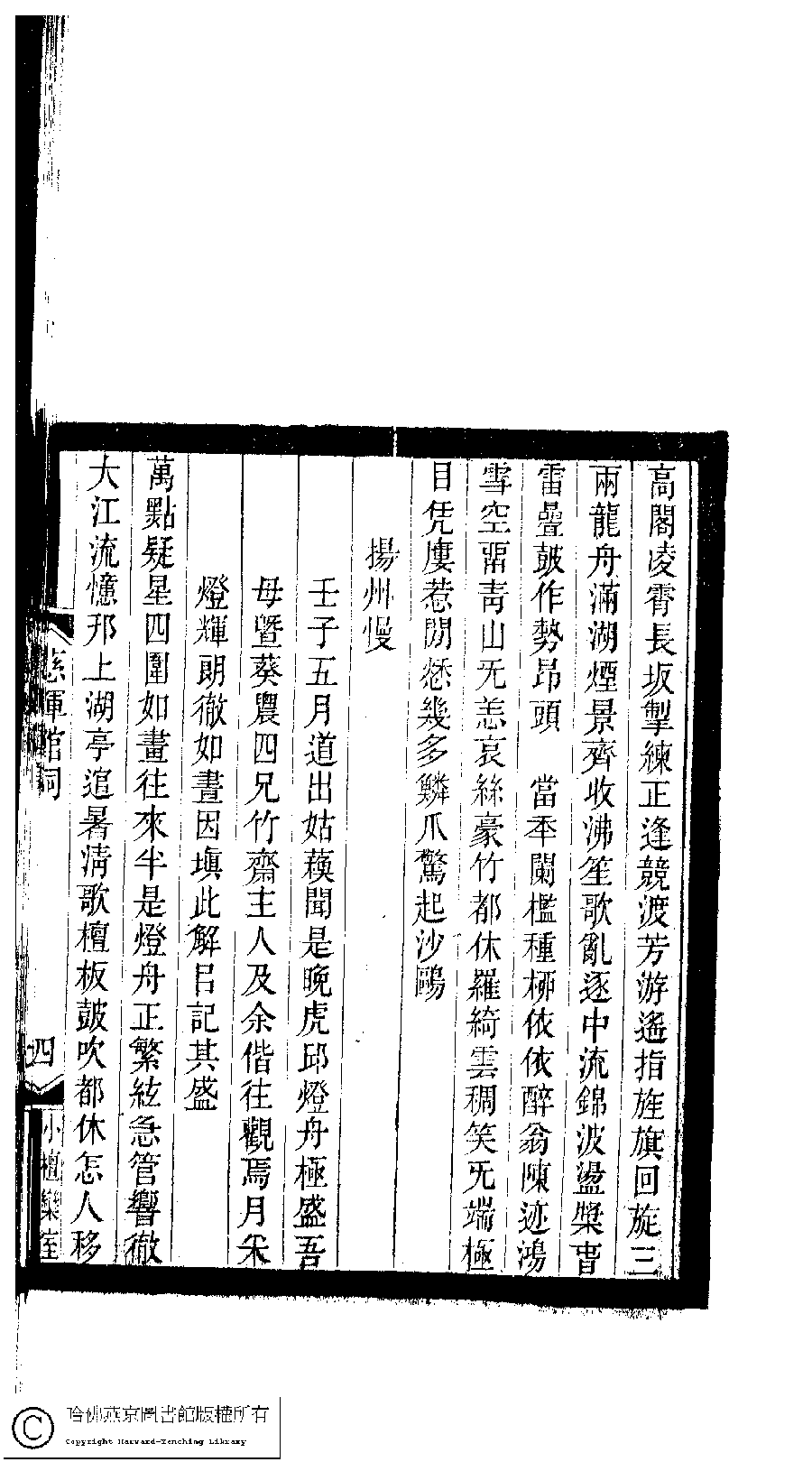 Poem [Yang zhou man : Ren zi wu yue dao chu Gusu wen shi wan Huqiu deng zhou ji sheng wu mu ji Kuinong si xiong Zhuzhaizhuren ji yu xie wang guan yan yue cai deng hui lang che ru hua yin tian ci jie yi ji qi sheng]